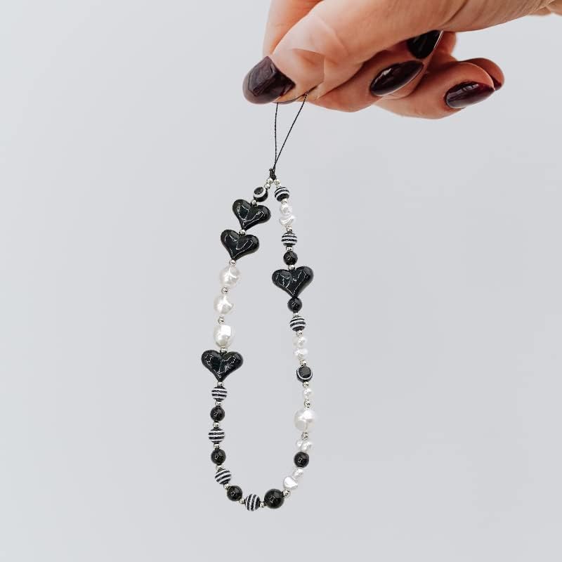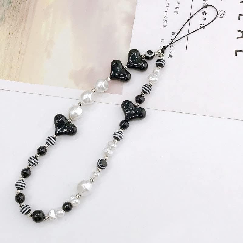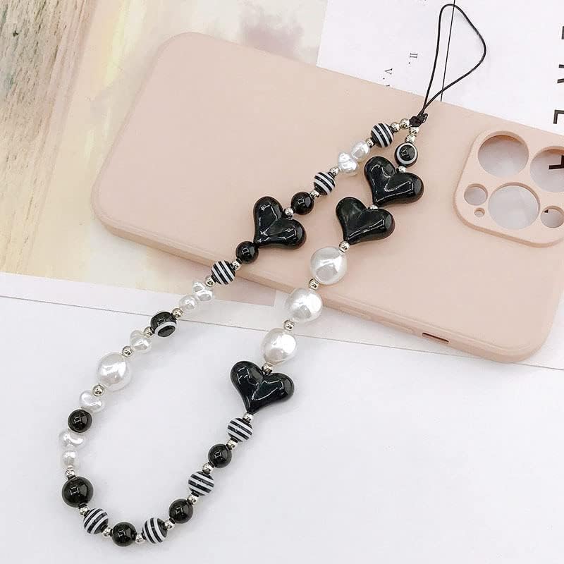 Pearl Lanyard for Phone:The phone pearl wrist strap is composed of artificial pearls, heart-shaped beads, striped beads and other different beads, exquisite and lovely, excellent accessories can highlight the unique temperament and elegant charm