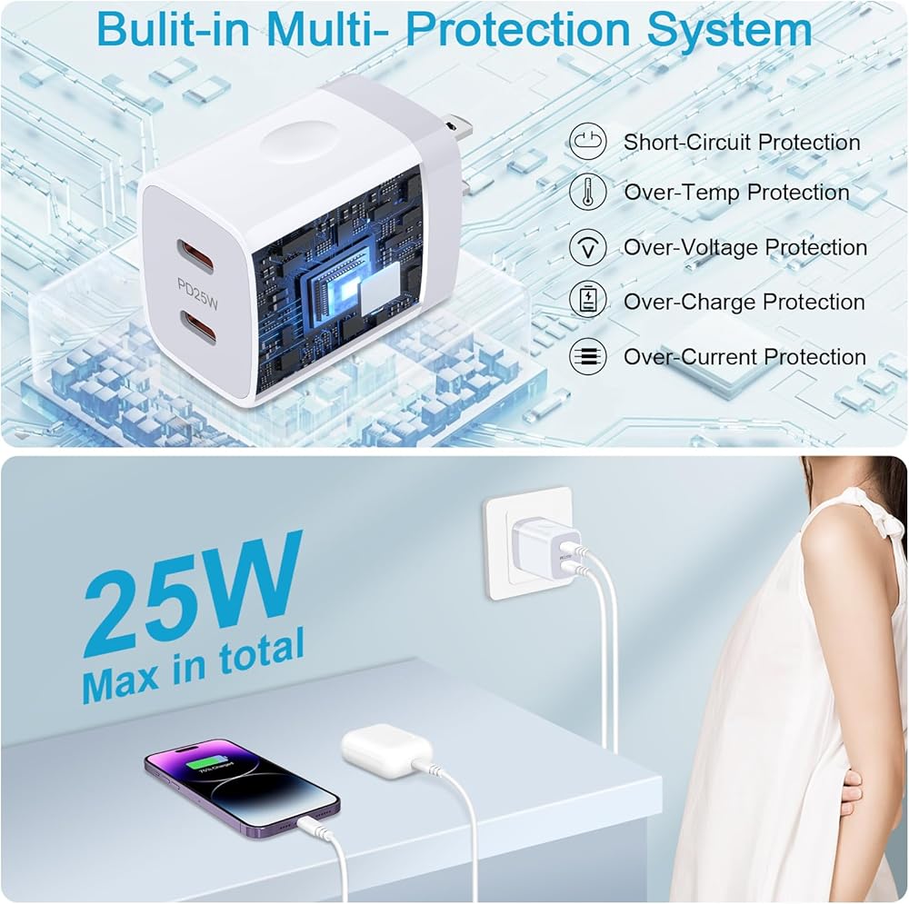 25W USB C iPhone 15 Pro Max Wall Charger Plug Fast Charging Block PD 3.0 Power Adapter with 6FT USB C to C Charger Cable