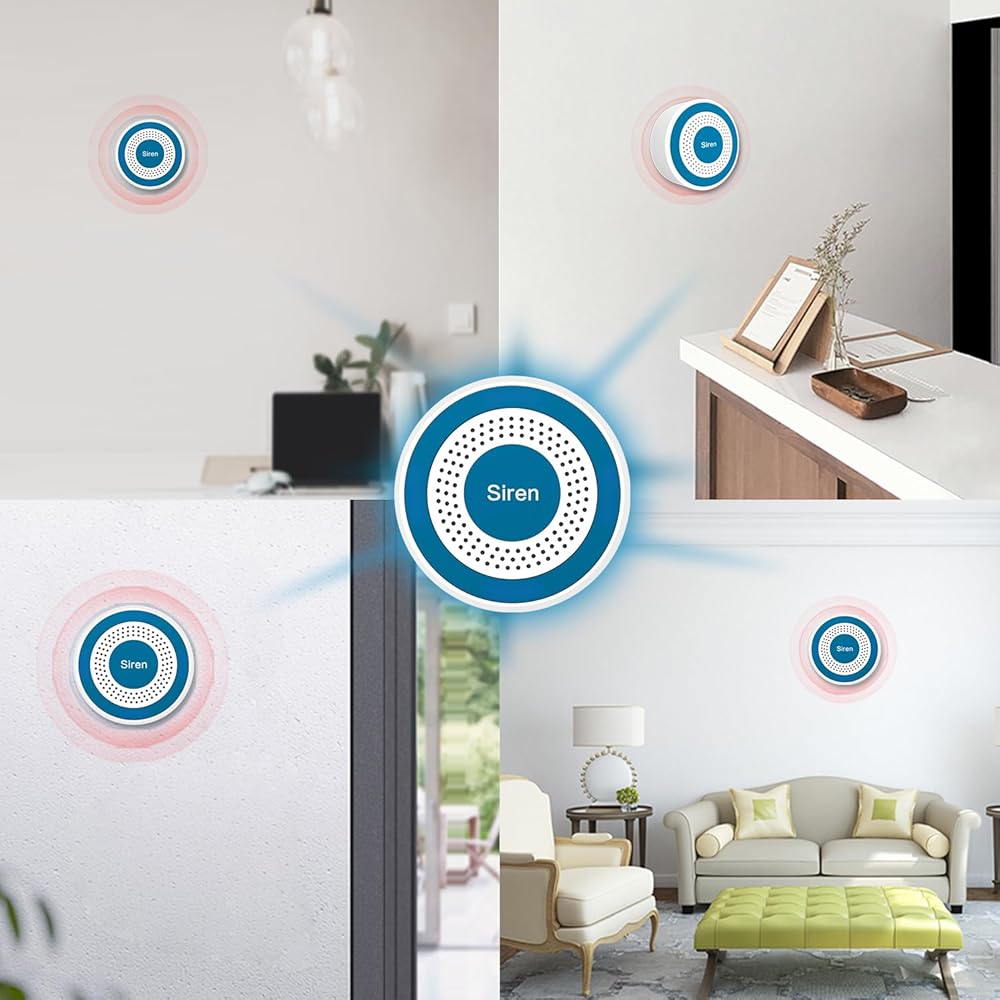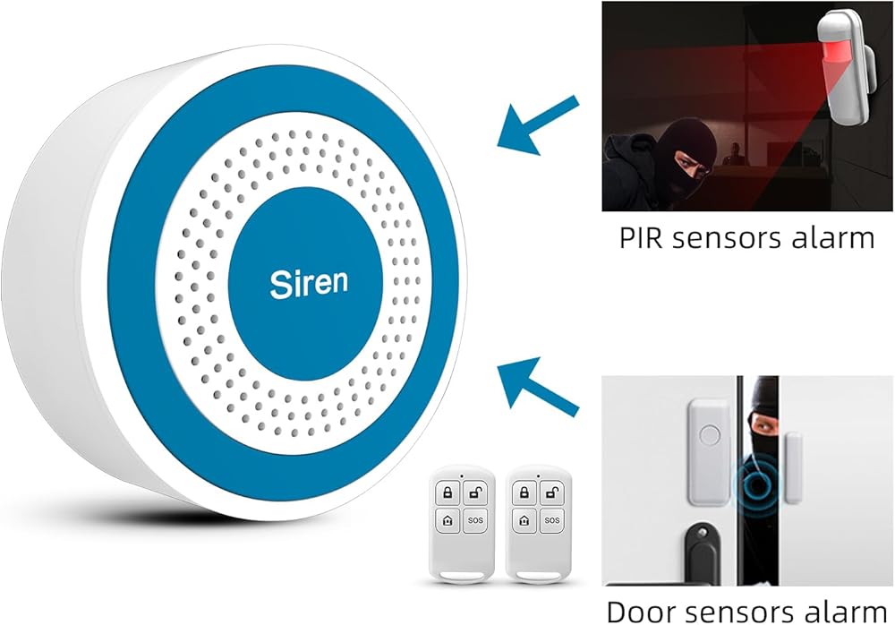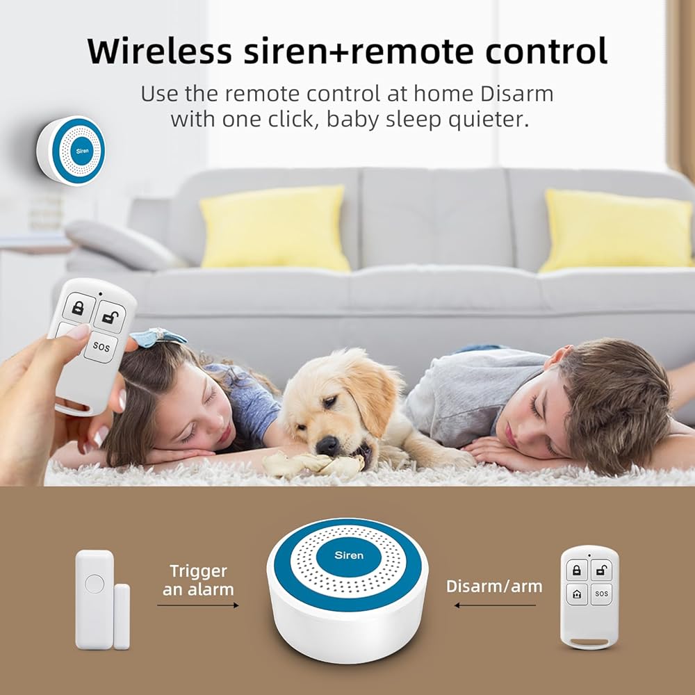 [سهل التشغيل]: تستخدم صفارات الإنذار هذه جهاز التحكم عن بعد للتسليح ونزع السلاح. دعم ما يصل إلى 20 منطقة دفاع لاسلكية و5 وحدات تحكم عن بعد لاسلكية. تتضمن الحزمة 1 صفارة إنذار، 1 كابل طاقة USB، 1 كاشف RIP، 2 مستشعر للباب/النافذة، 2 جهاز تحكم عن بعد، 2 براغي ودليل مستخدم. يرجى ملاحظة: هذا الإصدار لا يمكنه توصيل wifi، ولا يمكنه استخدام بطاقة sim ولا يمكنه العمل مع التطبيق.