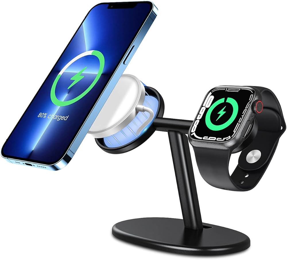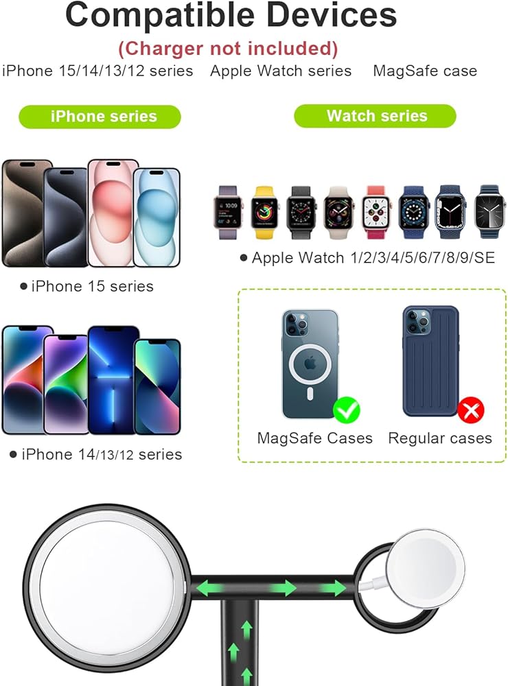 【حامل شاحن Magsafe وApple Watch】حامل شاحن Magsafe 2 في 1 من EWA، مزيج ممتاز لشاحن MagSafe وApple Watch. مصمم لشواحن Apple MagSafe الأصلية والشواحن ذات الحجم نفسه. متوافق مع iPhone 15 14 13 12 Mini وPlus وPro وPro Max وApple Watch Series SE Ultra/Series 9/8/7/6/5/4/3/2/1. حامل شاحن MagSafe مثالي لأولئك الذين يرغبون في استخدام Apple MagSafe الأصلي الخاص بهم لشحن أجهزة iPhone وساعة Apple في حامل واحد.