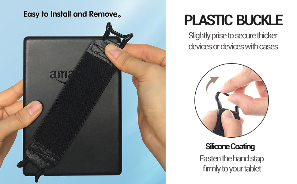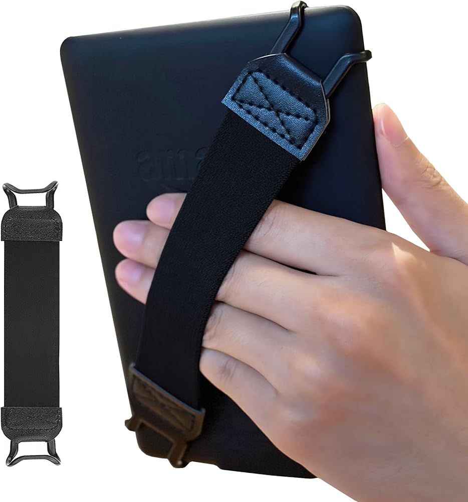 حزام يد آمن للكمبيوتر اللوحي Kindle eReaders Fire مقاس 6-8 بوصات - Kindle/Kobo/Voyaga/Lenovo/Sony Kindle E-Book Tablet، حزام يد متعدد الاستخدامات عالي المرونة وخفيف الوزن وحامل قبضة إصبع، أسود