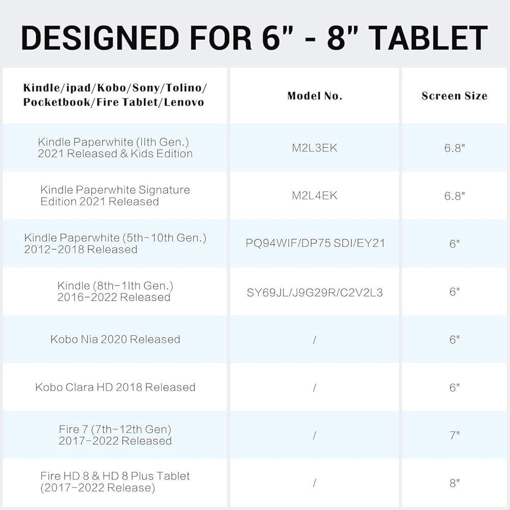 • 【التوافق: حامل حزام يد عالمي يتميز بمتانة ومرونة عالية ليناسب أجهزة القراءة الإلكترونية والكمبيوتر اللوحي مقاس 6 - 8 بوصات، بما في ذلك Fire Tablet/Kindle/Kobo Nia/Kobo Clara HD/Lenovo tab M7/tab M8/Voyaga/Sony/Tolino الكمبيوتر اللوحي، وما إلى ذلك. (ملاحظة: يرجى قياس أجهزة قراءة الكتب الإلكترونية أو الأجهزة اللوحية قبل الشراء.)