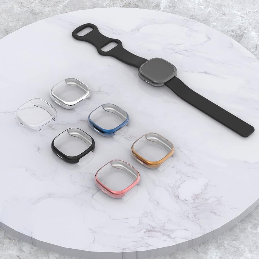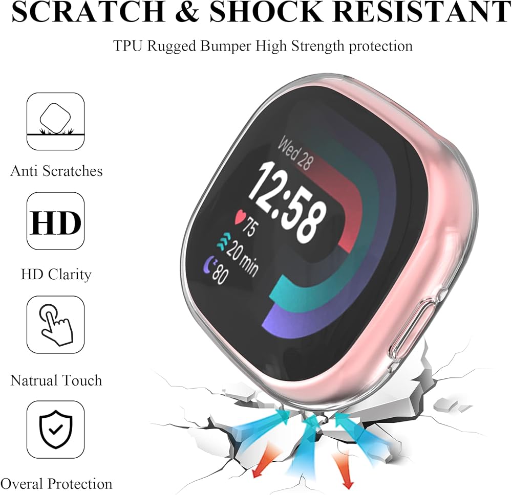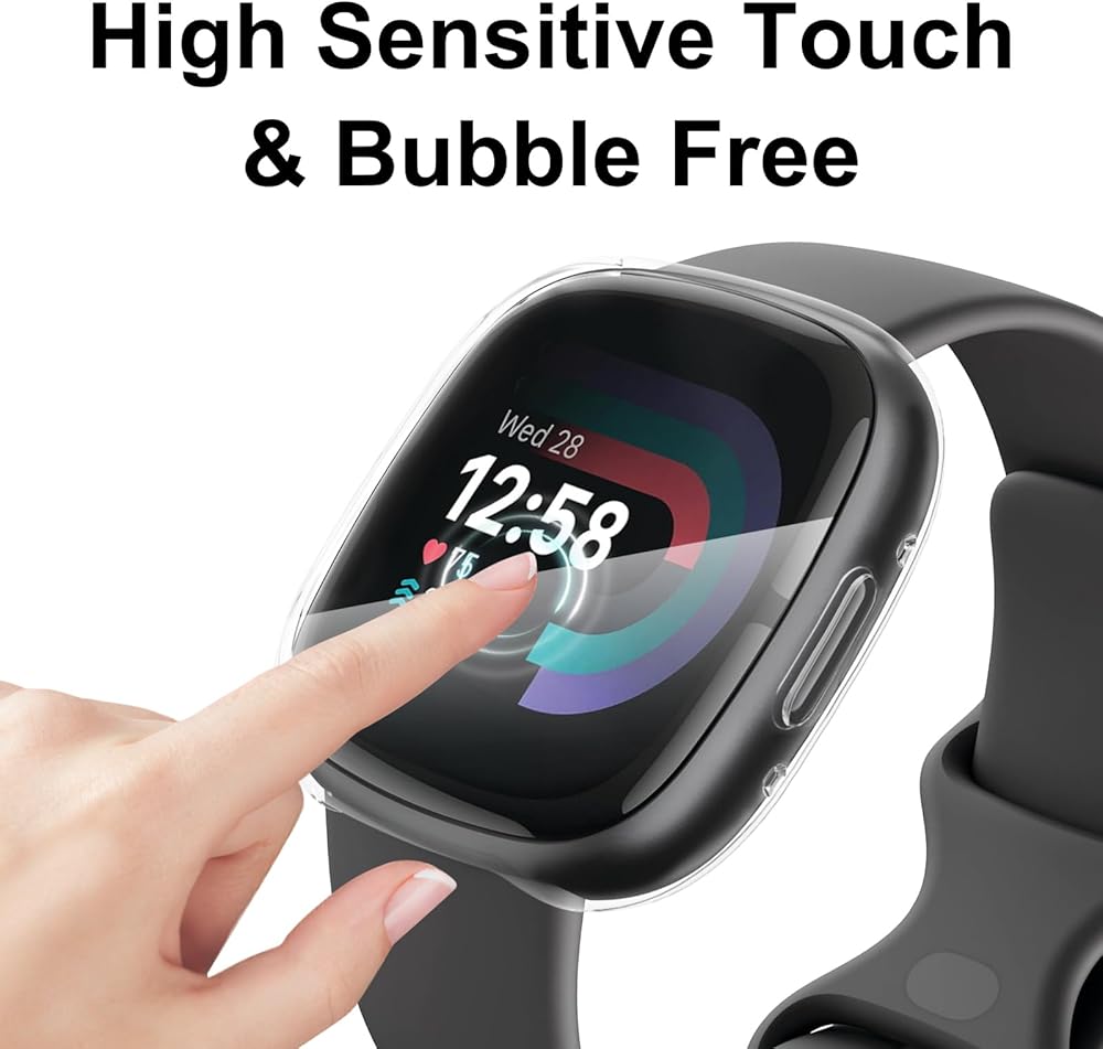 ★【لمسة حساسة وحماية شاملة】جراب واقي الشاشة Fitbit Sense 2/Versa 4 مصنوع من مادة TPU المرنة والقوية الممتازة. يضمن الحد الأدنى من التأثير على حساسية اللمس. سيوفر أفضل حماية في كل مكان ضد الجرجر والخدوش والسقوط والكسر والصدمات الناتجة عن الارتداء اليومي.