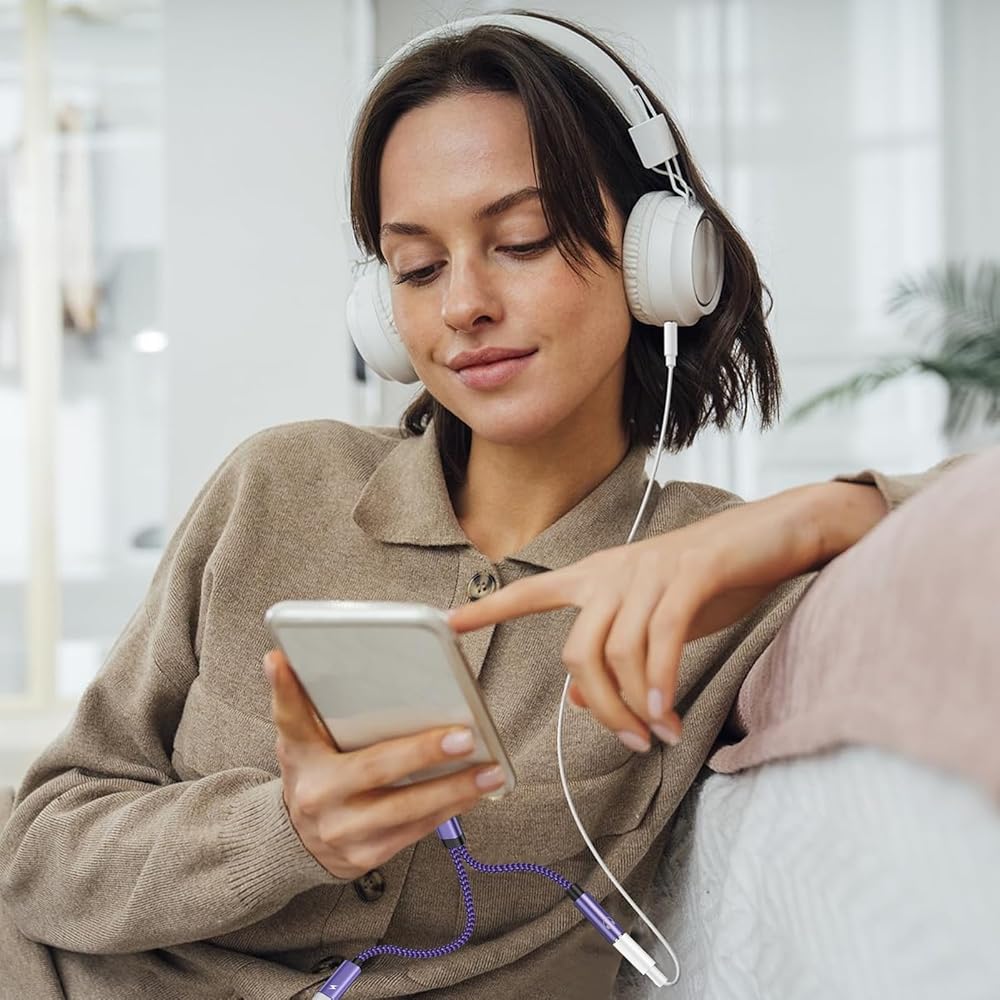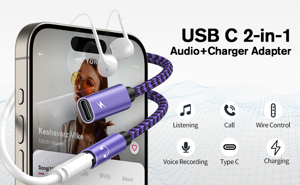 2 في 1 USB C إلى مقبس سماعة الرأس: باستخدام شاحن Type C ومحول AUX، يمكنك الاستماع إلى الموسيقى وتشغيل الألعاب وإجراء المكالمات ومشاهدة مقاطع الفيديو أثناء شحن هاتفك. كما أنه يدعم ضبط مستوى الصوت. يعمل مقبس الصوت متعدد الوظائف هذا إلى محول دونجل USB C مع معظم أجهزة USB C، بما في ذلك iPhone 15 وSamsung Galaxy S24 Ultra وغيرها. ومع ذلك، لا يسمح مقبس سماعة الرأس الخاص بدونجل USB-C نقل البيانات