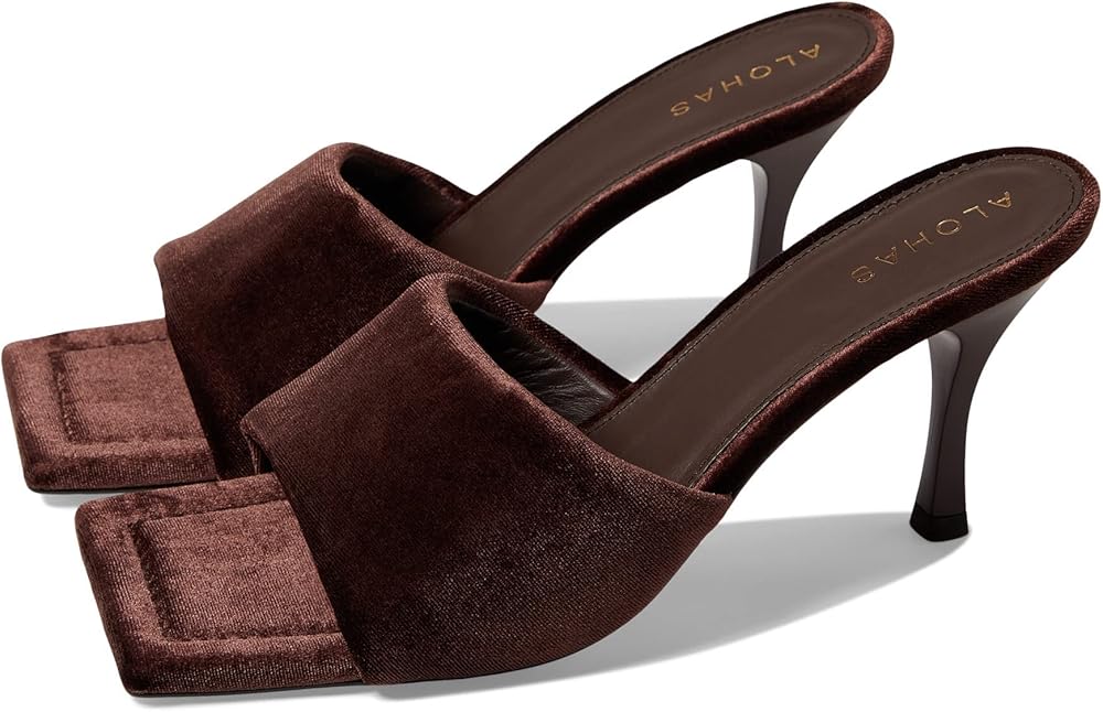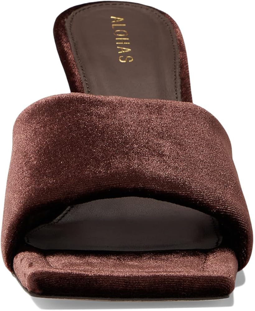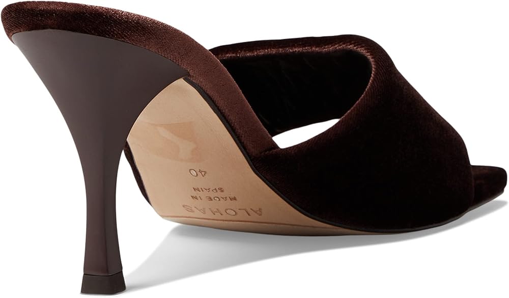Flaunt your love for the modern minimalist style by wearing the ALOHAS Puffy Velvet Heels. Textile upper. Leather lining and insole. Easy slip-on style. Open square toe. High stiletto heel. Durable synthetic outsole. Made in Spain.