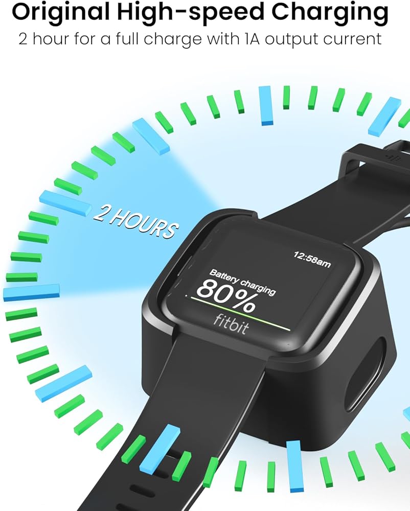شاحن حائط لـ Fitbit Versa 2، حامل كابل شحن بديل مع سلك USB بطول 3.3 قدم لساعة Fitbit Versa 2 الذكية (3.3 قدم)