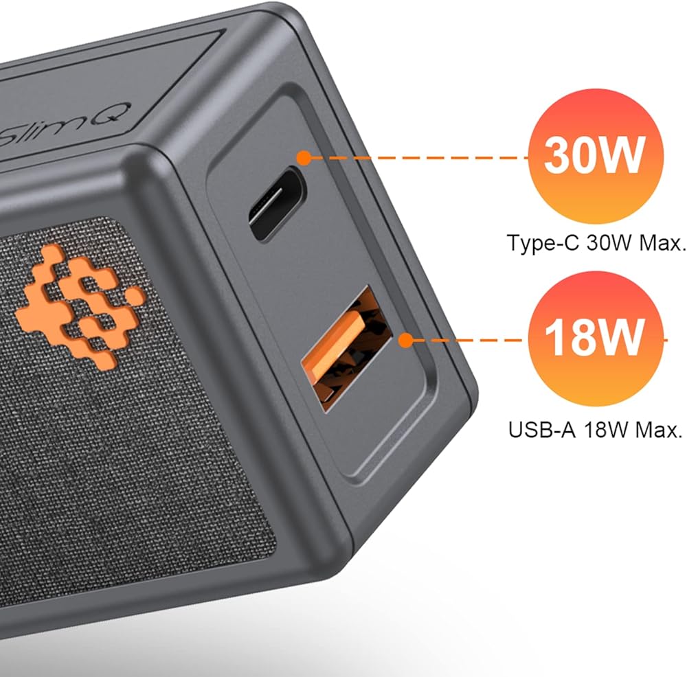 ❖【شاحن SlimQ 30W USB-C، يتميز بسرعات فائقة لتشغيل iPhone 12 عبر منفذ إخراج USB C، بكفاءة من 0 إلى 50% من البطارية في 30 دقيقة فقط، مما يوفر لك الكثير من الوقت. يوفر شحنًا سريعًا وفعالاً في المنزل أو المكتب أو أثناء التنقل.