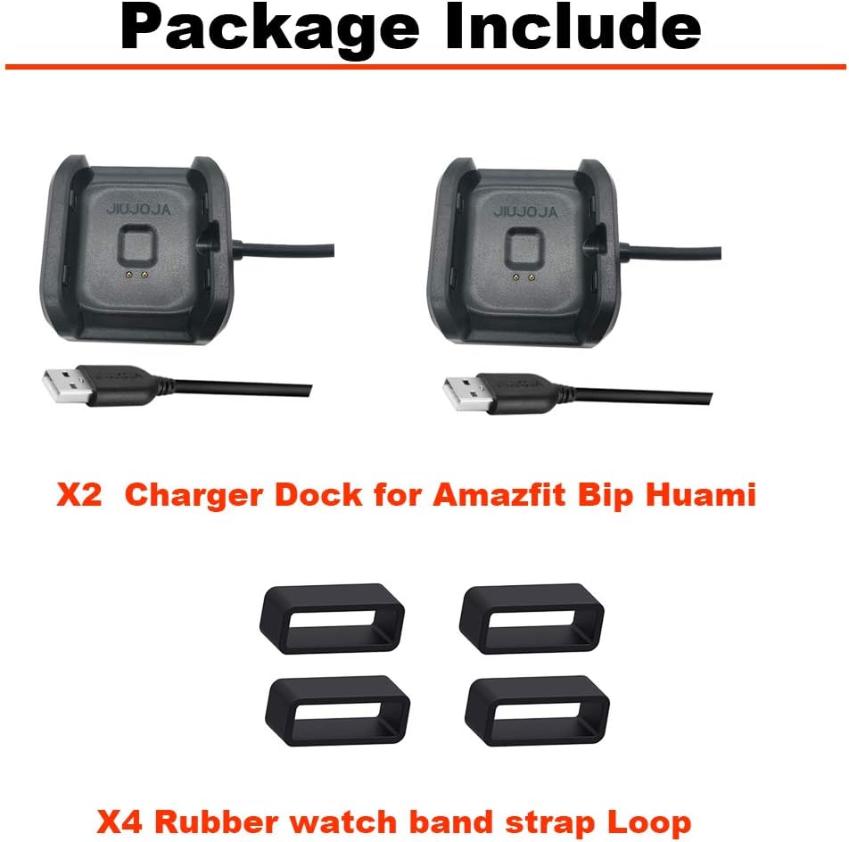 2 حزمة فقط لشاحن XIAOMI HUAMI Amazfit BIP، (ليس لـ BIP S/BIP U) استبدال حامل سلك الشحن وكابل بيانات مزامنة و4 قطع حامل حامل حزام الساعة لـ Amazfit BIP Smart