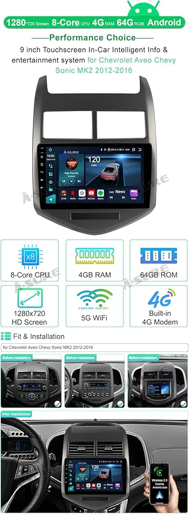 راديو ستيريو سيارة بواجهة مستخدم قابلة للتغيير: مشغل فيديو مدمج بشاشة لمس سعوية 9 بوصة لسيارة شيفروليه تشيفي سونيك 2012 2013 2014 2015 2016، يدعم مشغل Android، مثل AGAMA Car Launcher. يمكنك تنزيل التطبيق من Google Play وتخصيص المستخدم الخاص بك واجهة