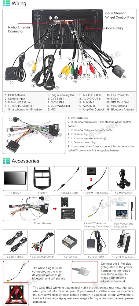 【التحكم في عجلة القيادة والتوصيل والتشغيل】يتوفر سرج سلكي للتوصيل والتشغيل، سهل التركيب (تتطلب بعض كابلات swc للسيارات أسلاكًا يدوية، اتصل بنا إذا لم يعمل swc)، يدعم برنامج زر التحكم الأصلي في عجلة القيادة للسيارة وتخصيصه (انقر فوق " "الإعدادات" في القائمة الرئيسية، انتقل إلى المصنع وأدخل كلمة المرور 8888، وانقر فوق "طراز السيارة"، وحدد "Raise->Chevrolet->Aveo->11-14")