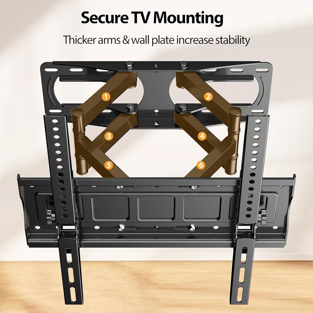 قوي ومتين: تم تصميم حامل الحائط هذا للتلفزيون بـ 6 أذرع مفصلية ويوفر دعمًا قويًا لأجهزة التلفاز الكبيرة حتى 99 ثانية. تحافظ الأذرع المزدوجة القوية على مستوى تثبيت التلفزيون عند ضبط الدوران، بينما تضمن أقفال الأمان بقاء شاشتك على الحامل دون الانزلاق أو السقوط لأداء طويل الأمد.