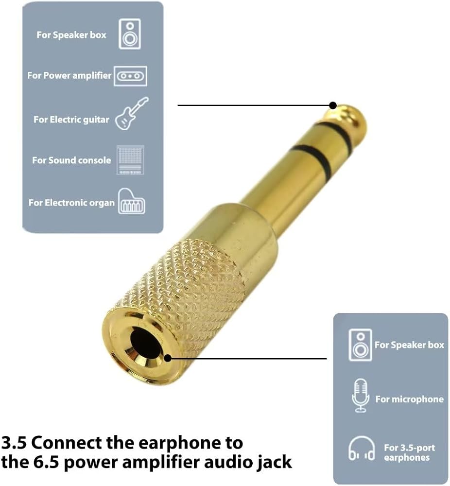 3.Metal gold adapter stereo plug male 6.3mm to female 3.5mm.