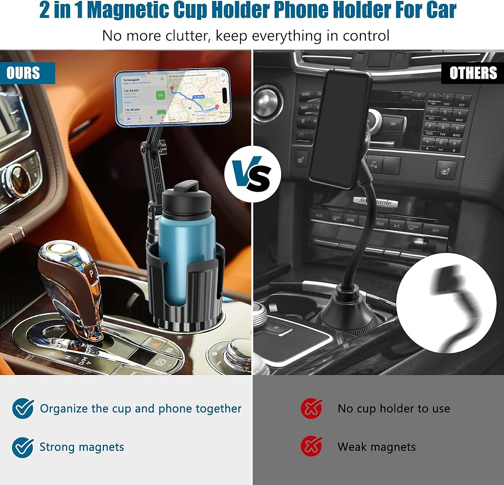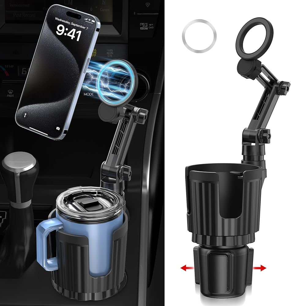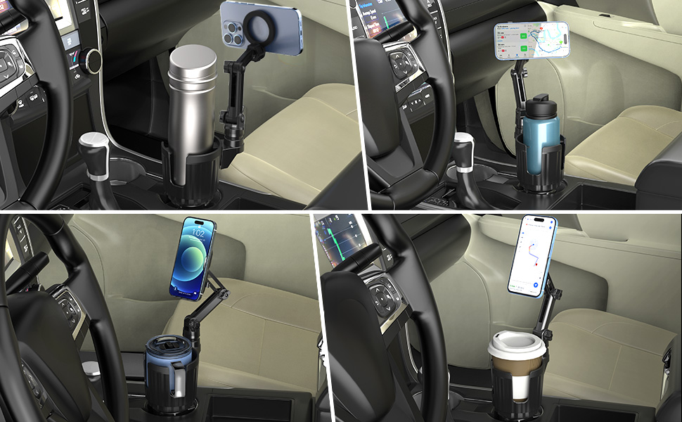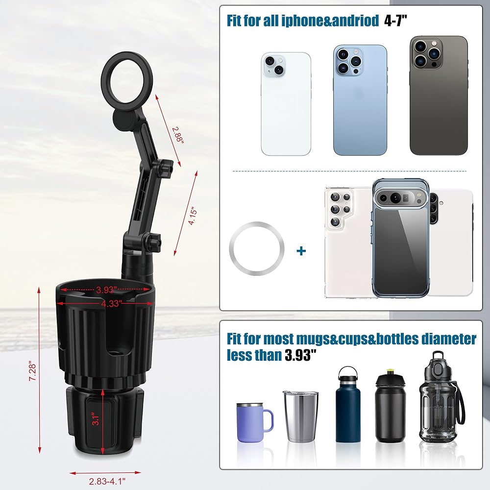 حامل هاتف حامل أكواب مغناطيسي متعدد الاستخدامات: حامل هاتف الكوب المغناطيسي مصمم لسلسلة iPhone 12 13 14 15 وحافظة مغناطيسية. يمكنك ربط الحلقة المعدنية بالجزء الخلفي من هاتفك أو حافظتك، وستعمل مع موديلات الهواتف الأخرى أو الجرابات غير المغناطيسية. يمكن أيضًا أن يتكيف مع معظم العلامات التجارية الشهيرة 18-40 أونصة أو بقطر فم أقل من 3.93 بوصة من الزجاجات والأكواب والأكواب. يمكن أن يتوسع محول موسع حامل أكواب السيارة من 2.83 بوصة إلى 4.1 بوصة لملء حامل أكواب وحدة التحكم لمعظم المركبات. بشكل آمن