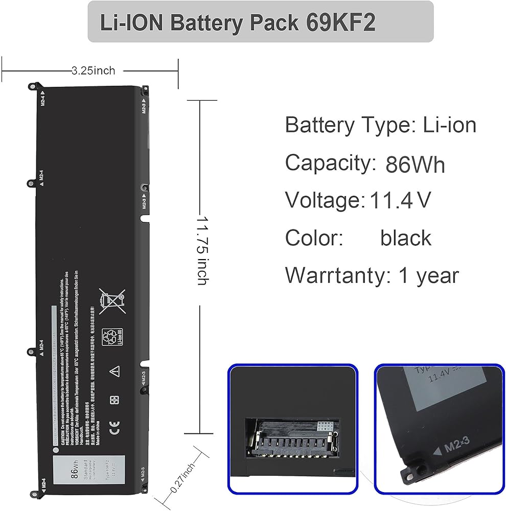 نوع البطارية: Li_ion؛ الجهد: 11.4 فولت؛ القدرة: 86 واط ساعة؛ الخلايا: 6 خلايا