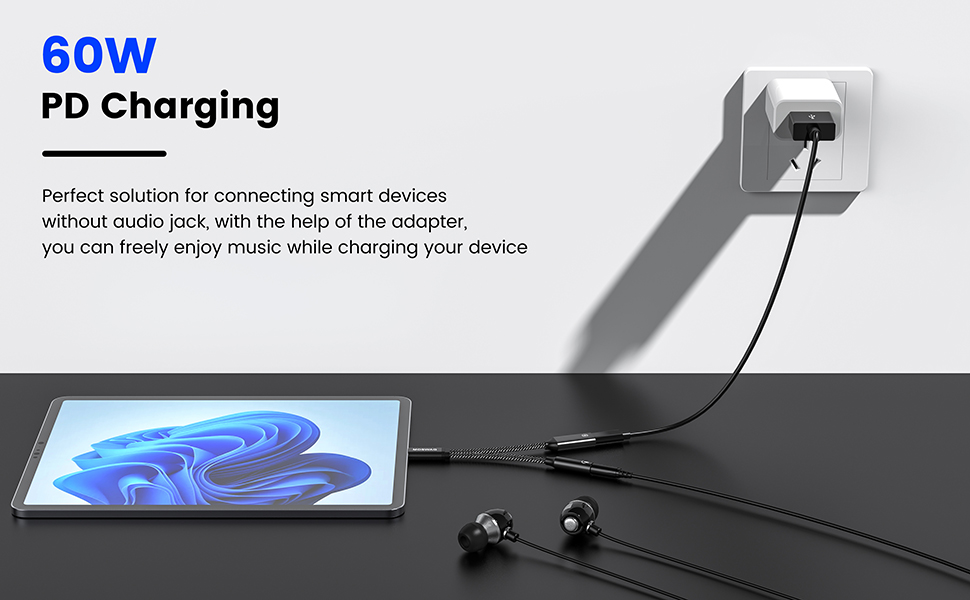 【يدعم الشحن السريع】: يدعم محول سماعة الرأس والشاحن USB c هذا ما يصل إلى 60 وات شحن PD، ملاحظة: قد لا يدعم مراقبة الجودة لبعض الهواتف الجديدة. محول usb c إلى aux متعدد الوظائف متوافق مع CTIA وOMTP.
