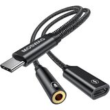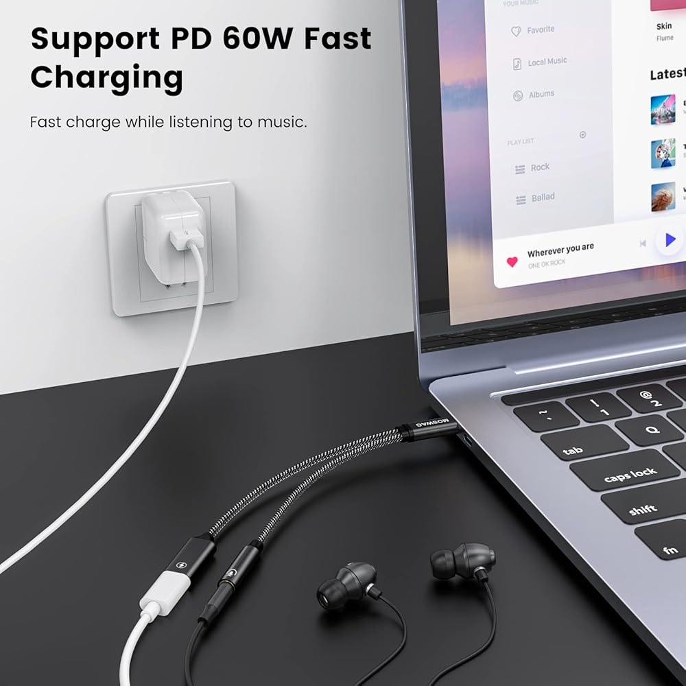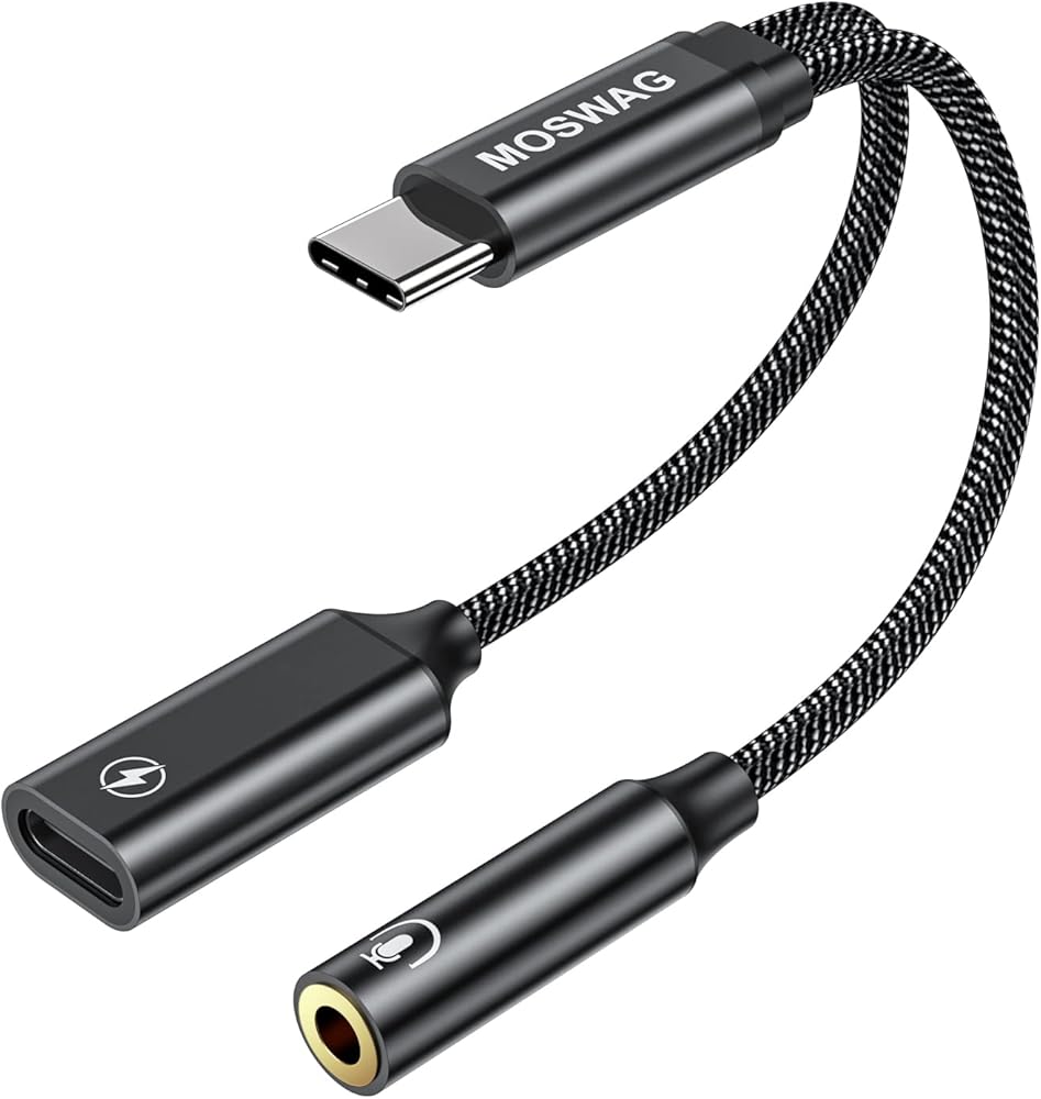 محول سماعة الرأس والشاحن MOSWAG USB C إلى 3.5 مم، 2 في 1 USB من النوع C إلى Aux Audio Jack Hi-Res DAC وPD 60W 3.0 كابل شحن سريع متوافق مع Pixel 4 XL، Galaxy S22 S21 S20+Plus Note 20
