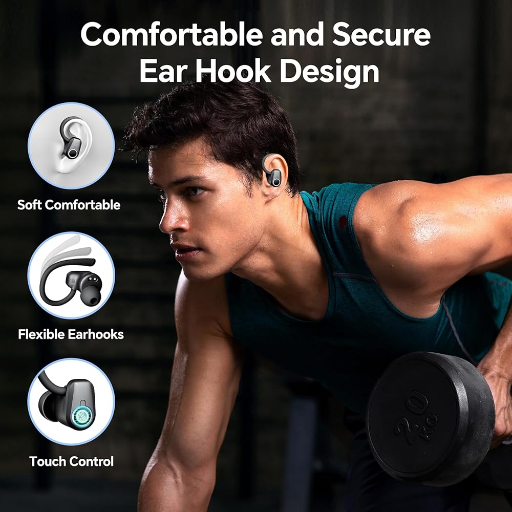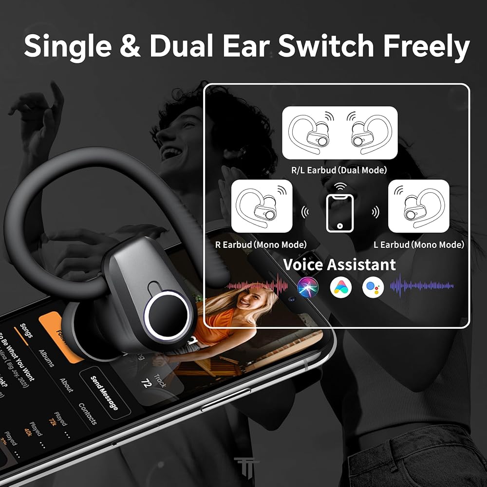 𝑰𝒏𝒗 𝒆 𝑪𝒐𝒎𝒑𝒂𝒕𝒊𝒃𝒊𝒍𝒊𝒕𝒚: تحتوي سماعات الأذن على مستشعرات للتحكم باللمس تتيح لك تشغيل/إيقاف الموسيقى مؤقتًا بسهولة، والرد على المكالمات/رفضها، وضبط مستوى الصوت، وما إلى ذلك من خلال النقر بلطف على سطح سماعات الرأس الخاصة بالتمرين. إنها أداة تحكم بديهية في متناول يدك. تتوافق سماعات الأذن هذه المزودة بميكروفون مع مجموعة متنوعة من الأجهزة التي تدعم تقنية Bluetooth، مثل هواتف iOS/Android وأجهزة الكمبيوتر المحمولة وما إلى ذلك.