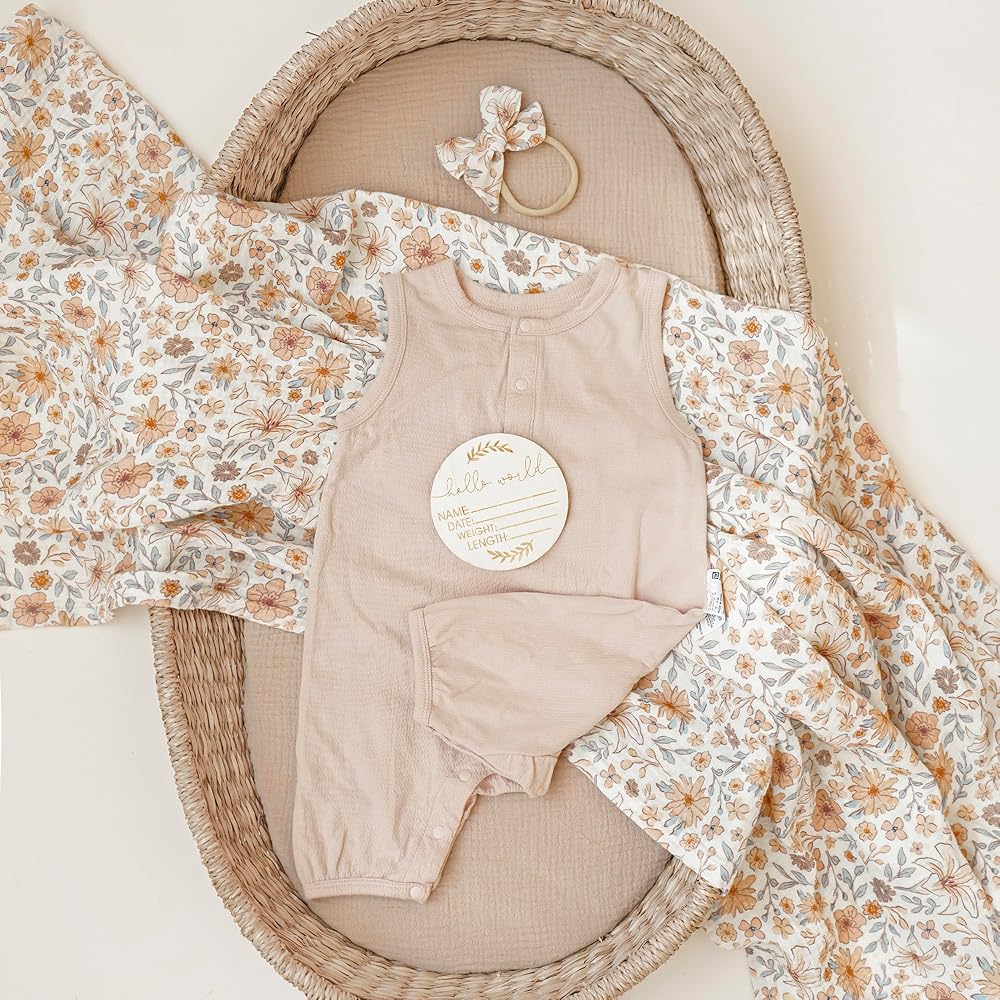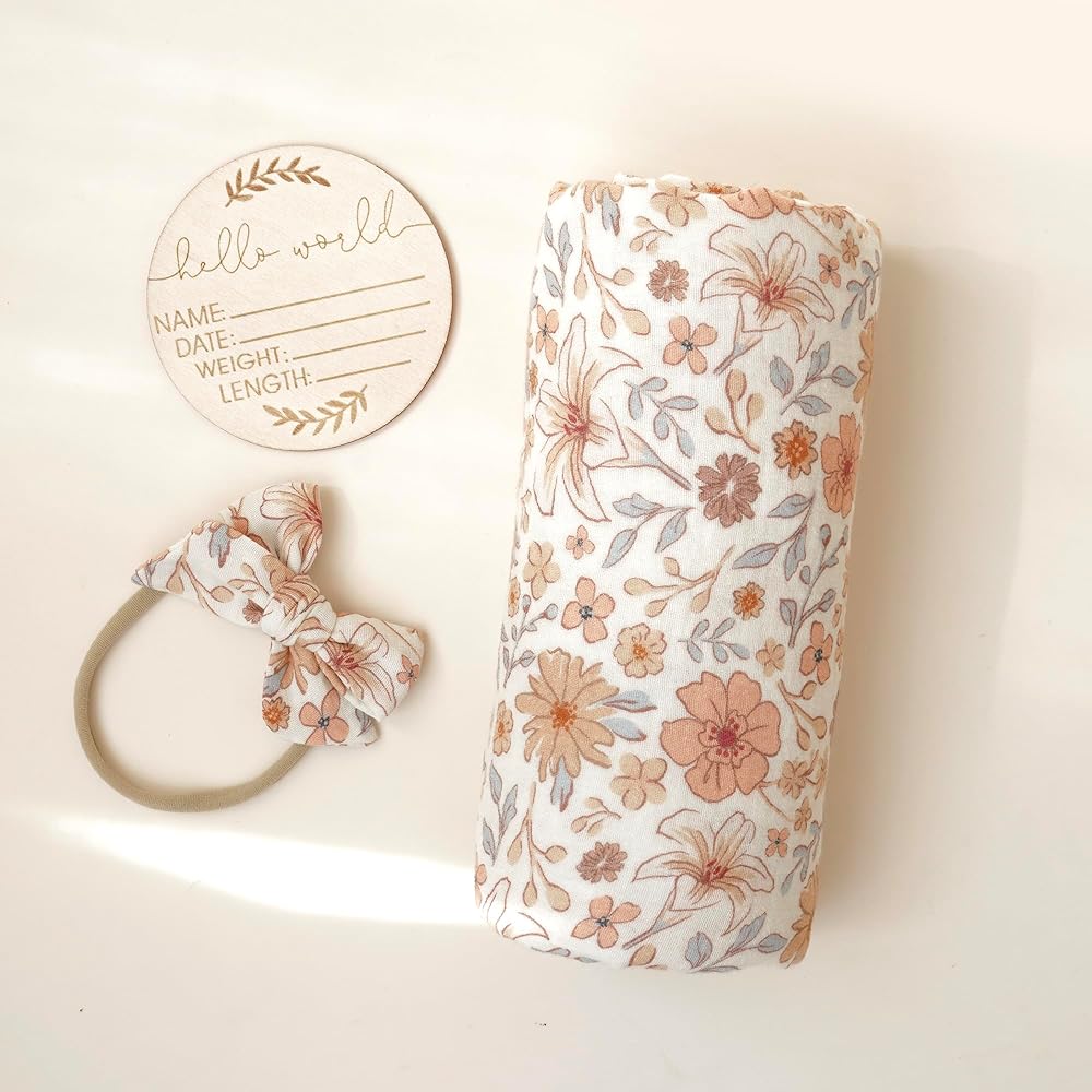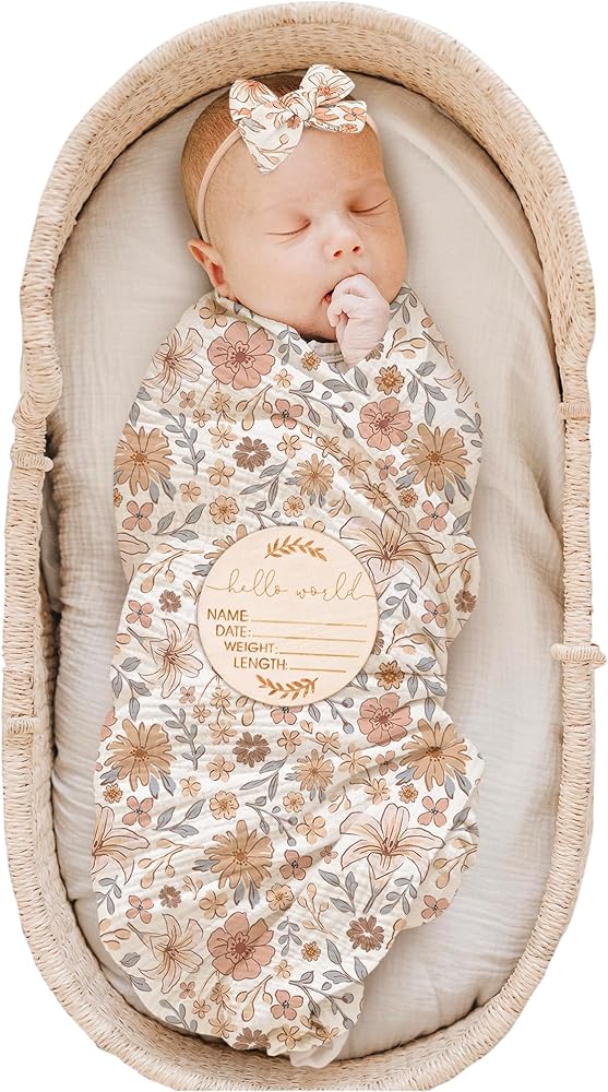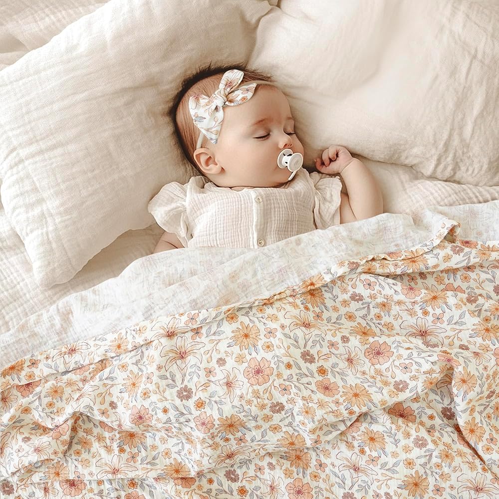 Generous Size: The newborn receiving blanket set includes: 1PCS blanket +1PCS headband+1 PCS Birth Announcement Card. Our muslin baby blanket measures 47" x 47" , which is way large enough to easily wrap or swaddle babies. Swaddle your newborn baby so that they feel secure and warm
