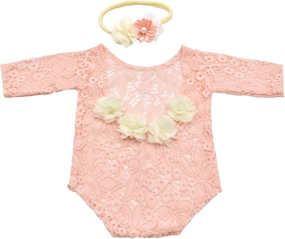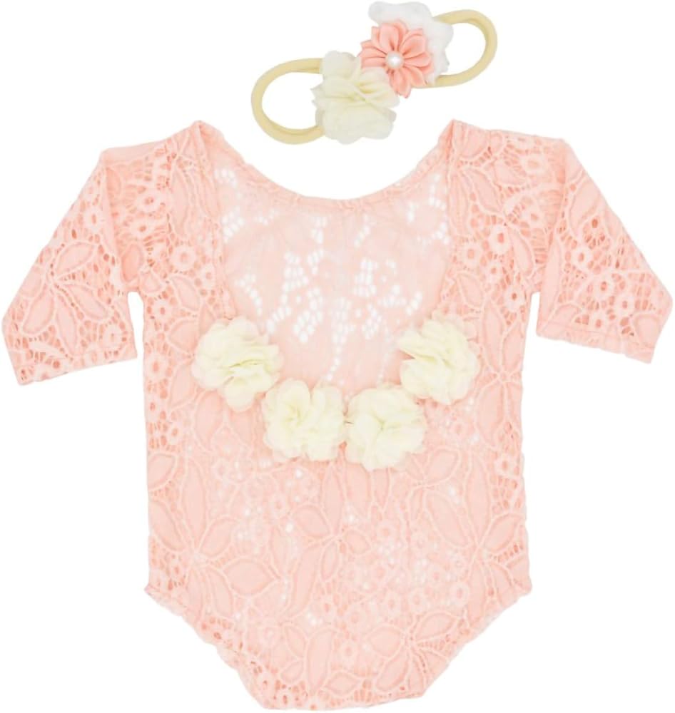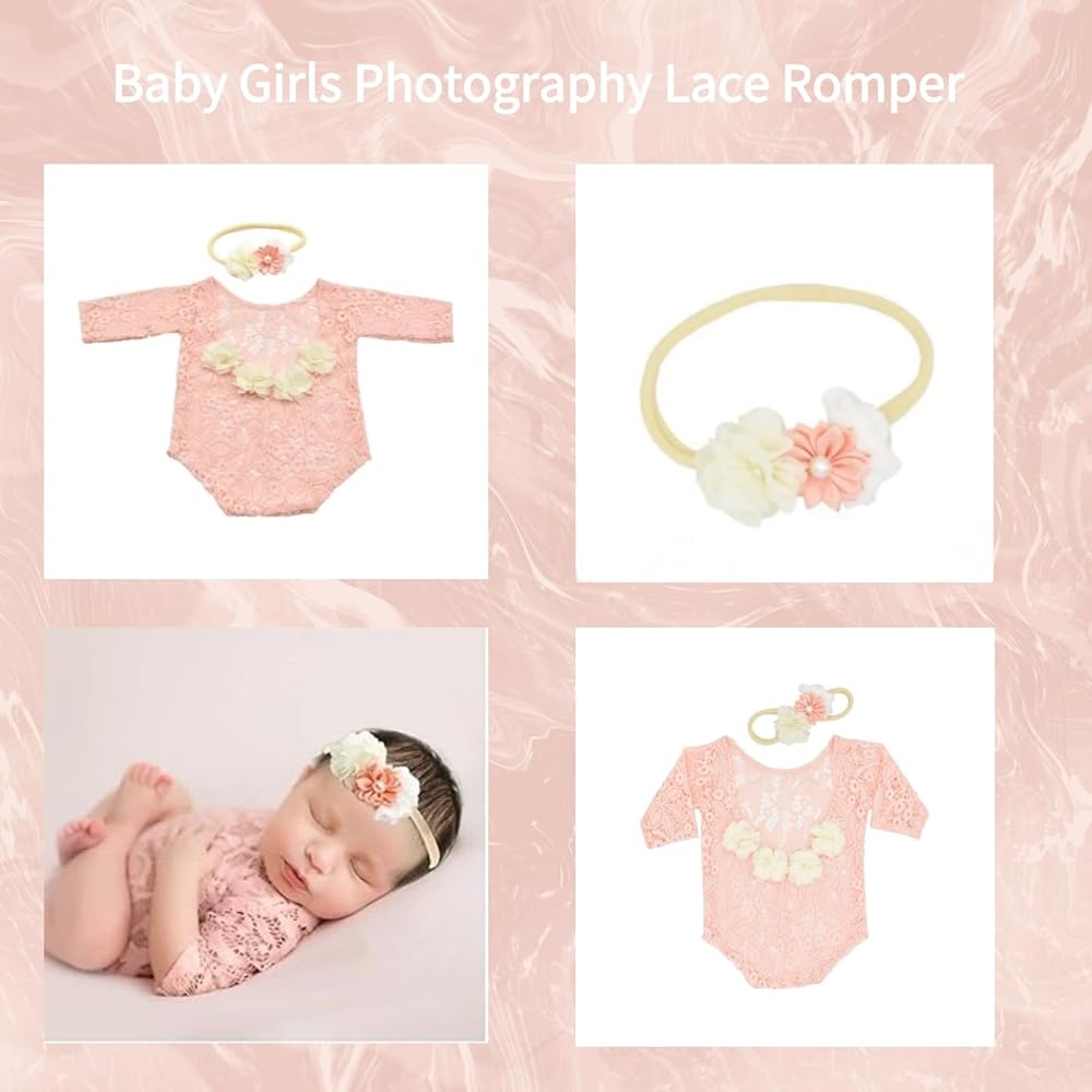 Quality Material - This newborn girls photography romper is made of the lace that is ultra soft. It feels smooth and comfortable to wear,elastic and easy to pose. newborn photography props baby girl with a matching head accessories workmanship here is extremely fine, the craft is extremely serious and attentive