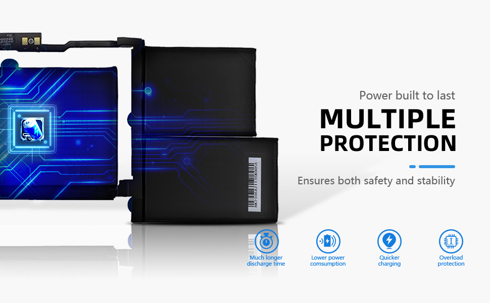 【حماية متعددة: 】خلايا من الدرجة A - تضمن عمرًا أطول وقدرة على التحمل، مدمجة في وظائف حماية متعددة - ماس كهربائى، الحرارة الزائدة والحمل الزائد، شريحة تحكم ذكية - شحن أسرع، استهلاك أقل للطاقة ووقت تفريغ أطول.