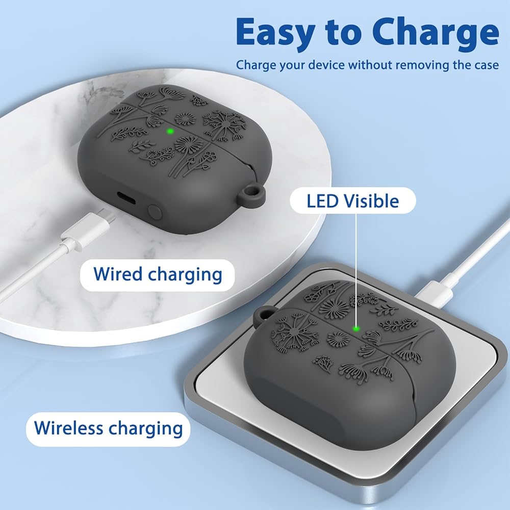 ✨【مادة فاخرة وتصميم منقوش】: حافظة الحماية المقاومة للصدمات لهاتف Samsung Galaxy Buds 3/Buds 3 Pro مصنوعة من مادة السيليكون الفاخرة، ومقاومة للتآكل، ومضادة للانزلاق، ومضادة للسقوط، ومضادة للخدش، وبصمات الأصابع والغبار. مقاومة للامتصاص المحكم لن تسقط. تصميم الهندباء المنقوش ثلاثي الأبعاد الرائع، يجعل حافظة شحن galaxy buds 3 pro تبدو فريدة جدًا وتحظى بالكثير من الإطراء