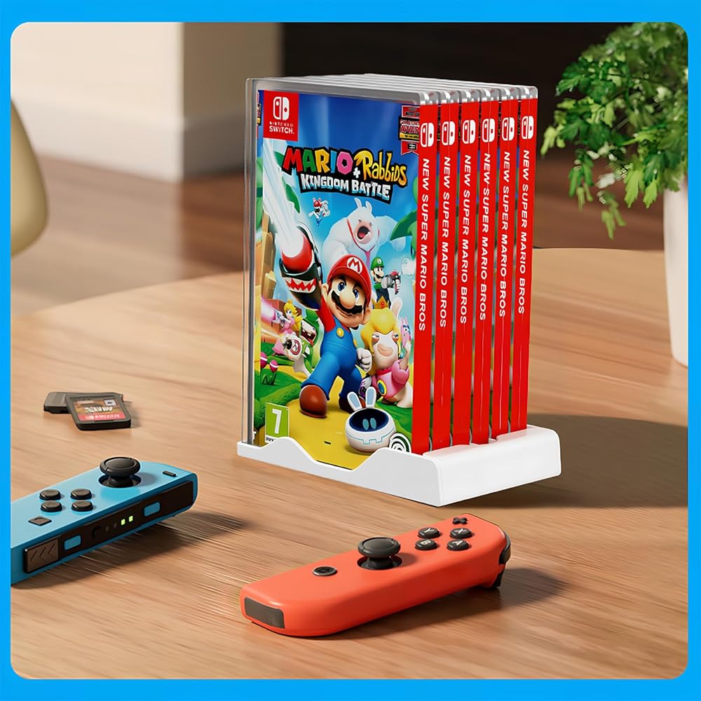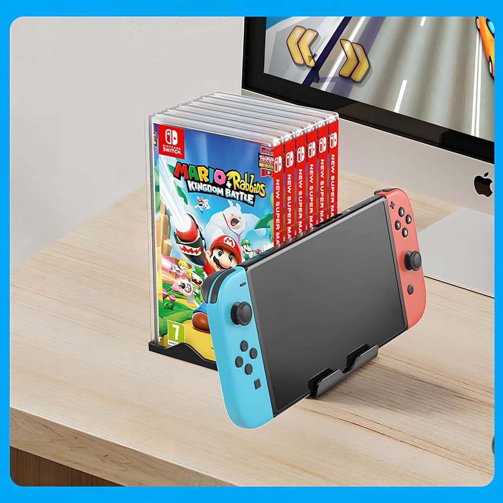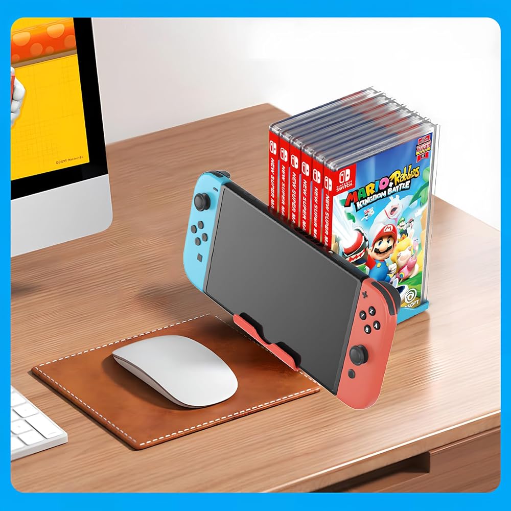 حامل ألعاب نينتندو سويتش موفر للمساحة: مصمم للاستخدام المكتبي، يوفر حامل ألعاب نينتندو سويتش الخاص بنا المساحة مع توفير سهولة الوصول إلى مكتبة الألعاب الخاصة بك. يسمح التصميم المدمج بوضع متعدد الاستخدامات، سواء على الرف أو المكتب أو كجزء من منظم غرفة نينتندو الخاص بك.