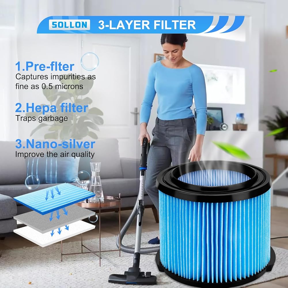 ترشيح قوي: يتكون فلتر المكنسة الكهربائية VF3500 Shop من ثلاث طبقات من ورق الترشيح المطوي، مما يزيد من مساحة السطح الملامسة للهواء، مما يحسن تدفق الهواء ويقلل الانسداد. مرشح VF3500 قادر على جمع الغبار الصغير الذي يصل حجمه إلى 0.5 ميكرون بكفاءة تصل إلى 99%
