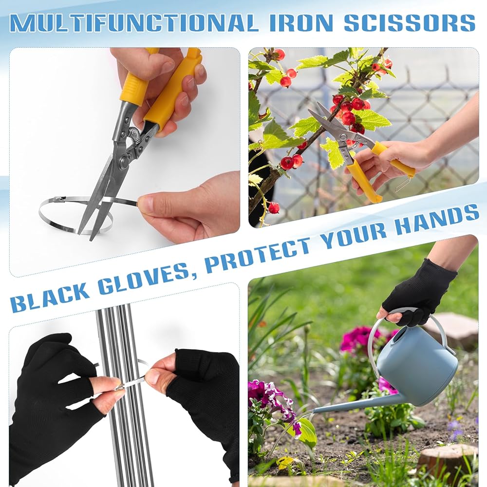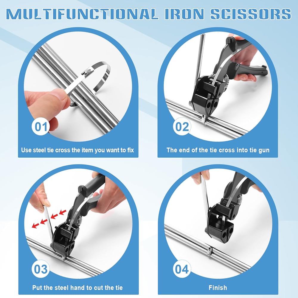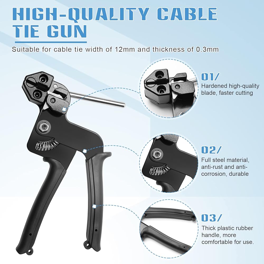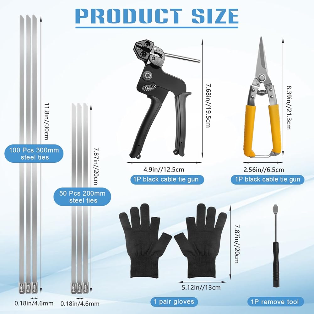 1 + 152P مسدس ربط الكابل من الفولاذ المقاوم للصدأ مع روابط الكابلات، مجموعة مسدس ربط الكابلات المعدنية Luxiv، مجموعة أدوات ربط الكابلات المعدنية المحمولة، أدوات ربط الكابلات المعدنية شديدة التحمل مع روابط فولاذية 150P، مقص، وقفازات