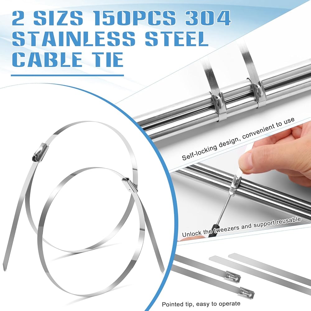 • 【ربطة عنق فولاذية 150P إضافية】: تتضمن العبوة 100 قطعة من ربطات العنق بسحاب من الفولاذ المقاوم للصدأ مقاس 0.18 × 11.8 بوصة (4.6 × 300 مم)، و50 قطعة مقاس 0.18 × 7.87 بوصة (4.6 × 200 مم)، إجمالي 150 قطعة من ربطات العنق، وحزمة أدوات، أكثر ملاءمة.