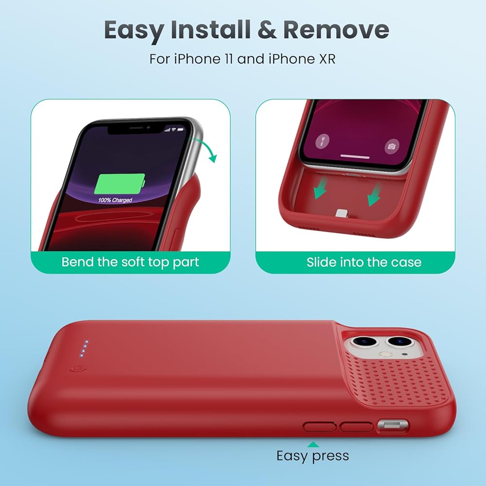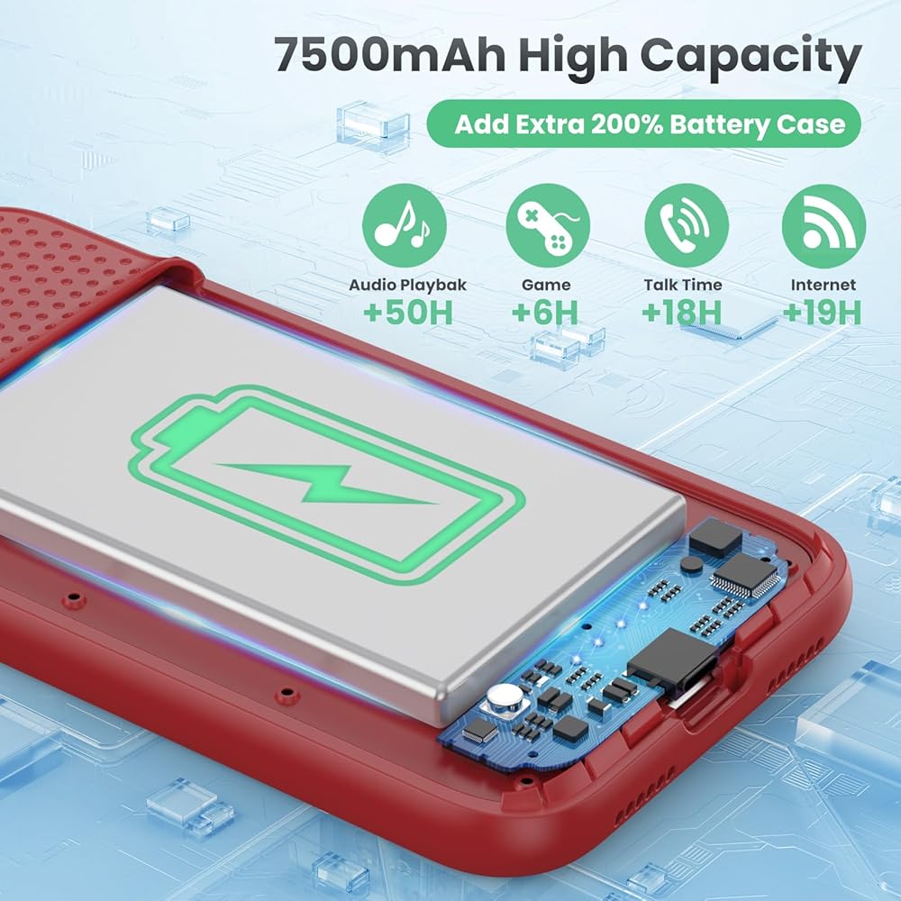 【بطارية قوية بقوة 7500 مللي أمبير في الساعة】تم تجهيز حافظة الشحن لجهاز iPhone 11/XR(6.1 بوصة) ببطارية قوية بقوة 7500 مللي أمبير في الساعة توفر وقت التحدث واللعب الممتد. استمتع بعمر بطارية أطول على جهاز iPhone الخاص بك دون القلق بشأن نفاد الطاقة. تمنحك هذه البطارية عالية السعة ما يصل إلى 50 ساعة إضافية من وقت التحدث، أو 70 ساعة من تشغيل الموسيقى أو 20 ساعة من تشغيل الفيديو، وهي مثالية للرحلات الطويلة، الألعاب والأيام المزدحمة.