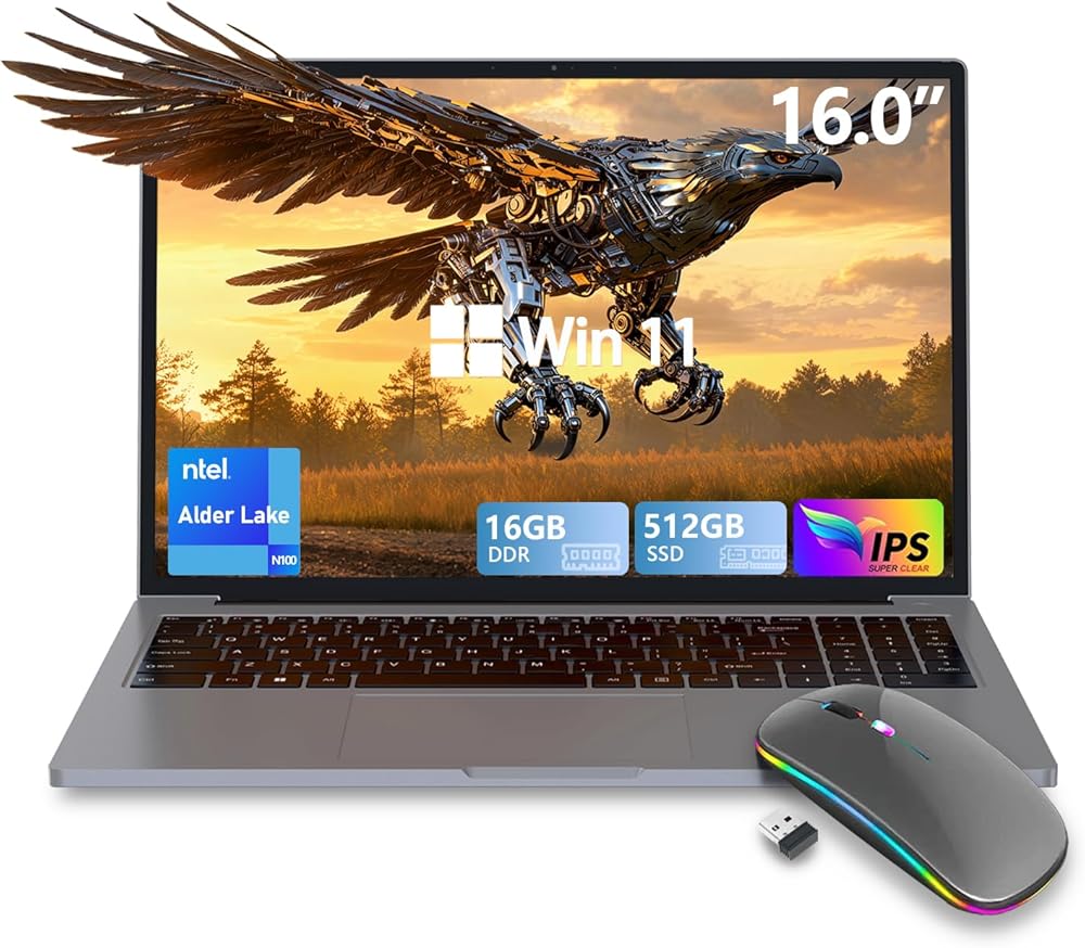 كمبيوتر محمول للأعمال، كمبيوتر محمول، ذاكرة الوصول العشوائي 16 جيجابايت، 512 جيجابايت SSD، وحدة المعالجة المركزية N100 (4C/4T، ما يصل إلى 3.4 جيجا هرتز، الجيل الثاني عشر)، شاشة FHD مقاس 16 بوصة، هيكل من الألومنيوم، يدعم WiFi/BT، لوحة مفاتيح بإضاءة خلفية،