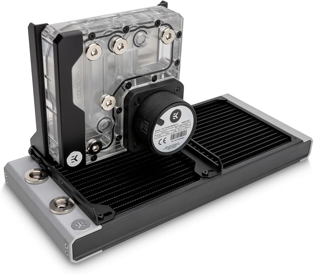 A steel mounting bracket that enables the user to mount the FLT-style combo units or reservoirs, radiators, and fans perpendicular to any 140mm fan mounting holes