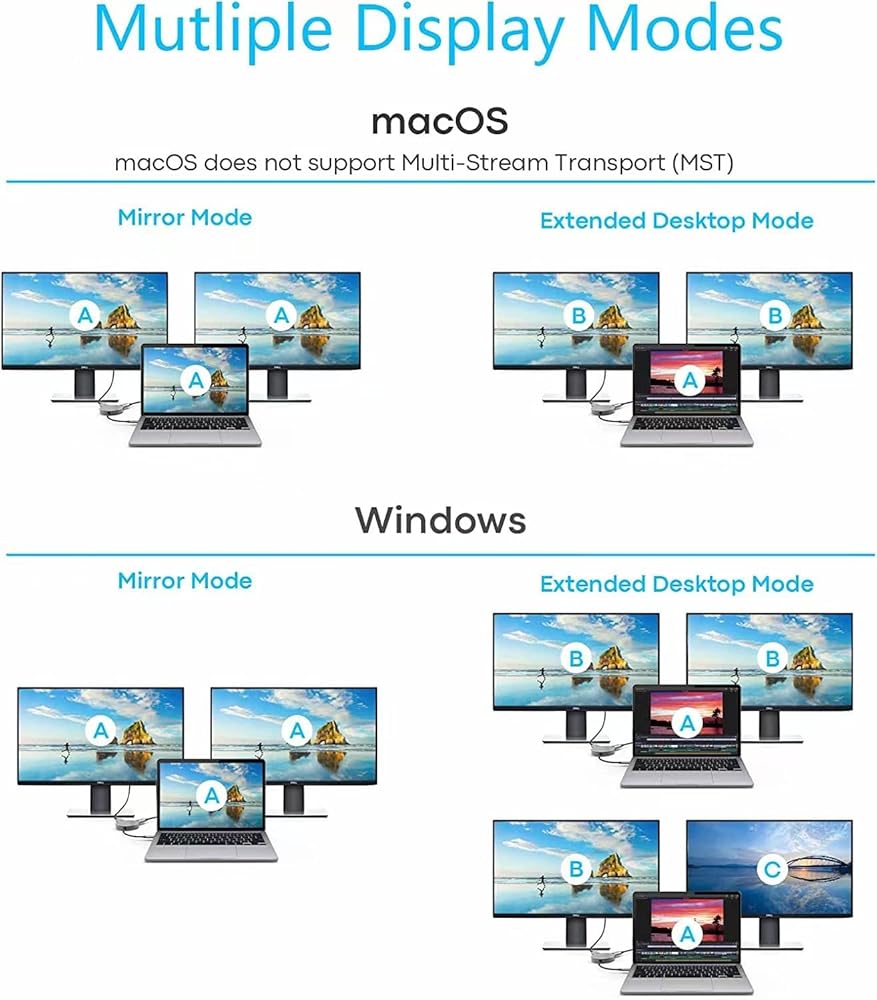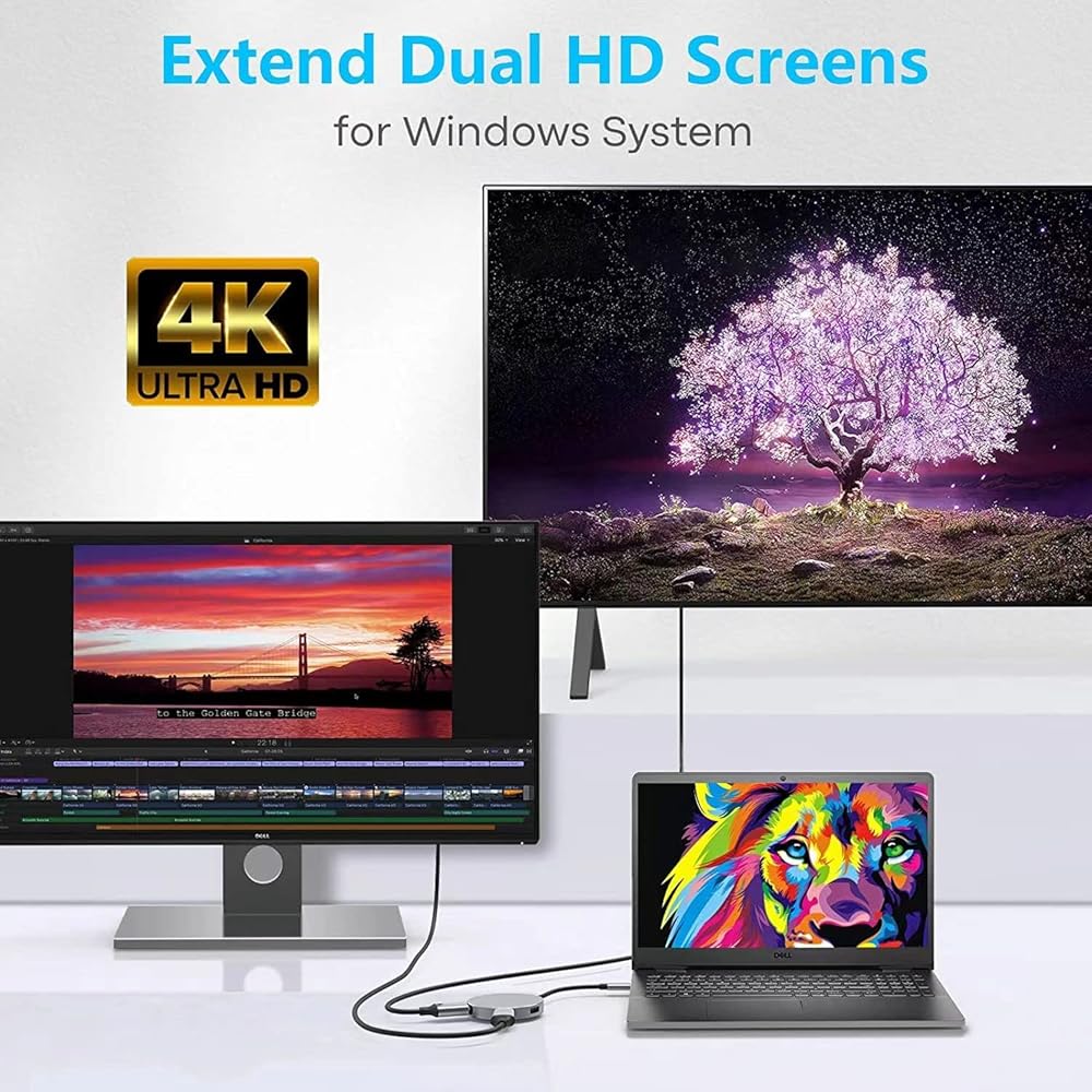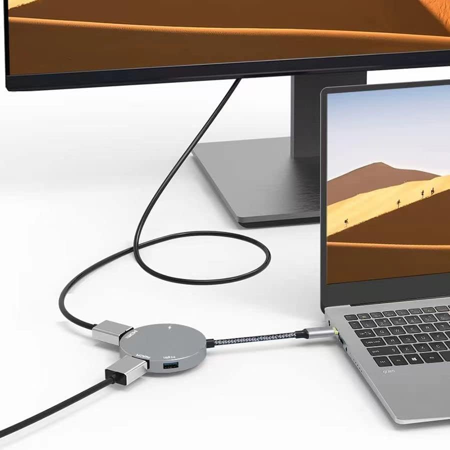 محول متعدد الشاشات: يحتوي محول hdmi usb c الخاص بنا على منفذ USB من النوع C يدعم إخراج الفيديو أيضًا، والذي يمكنه تحقيق عرض ثلاثي بواسطة محول واحد فقط. ملحوظة: نظام التشغيل يدعم فقط شاشتين لوضع المرآة من منافذ HDMI!