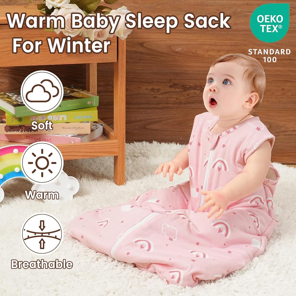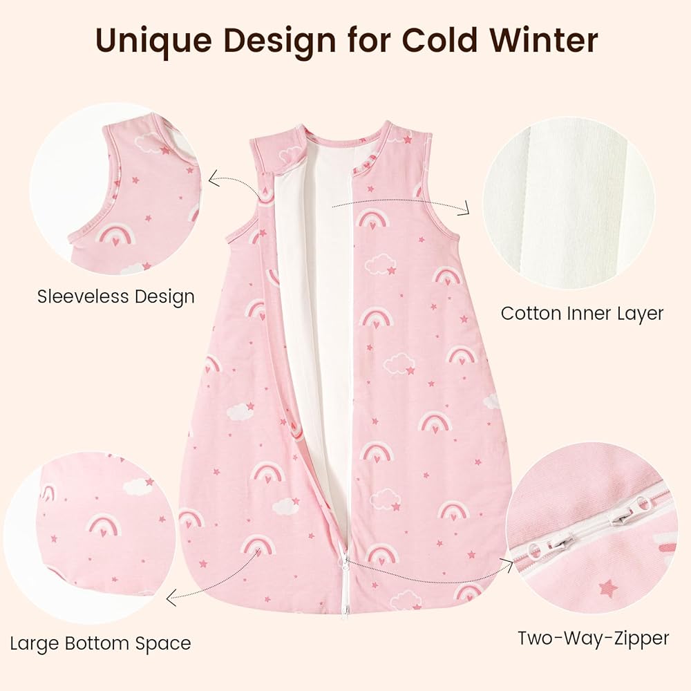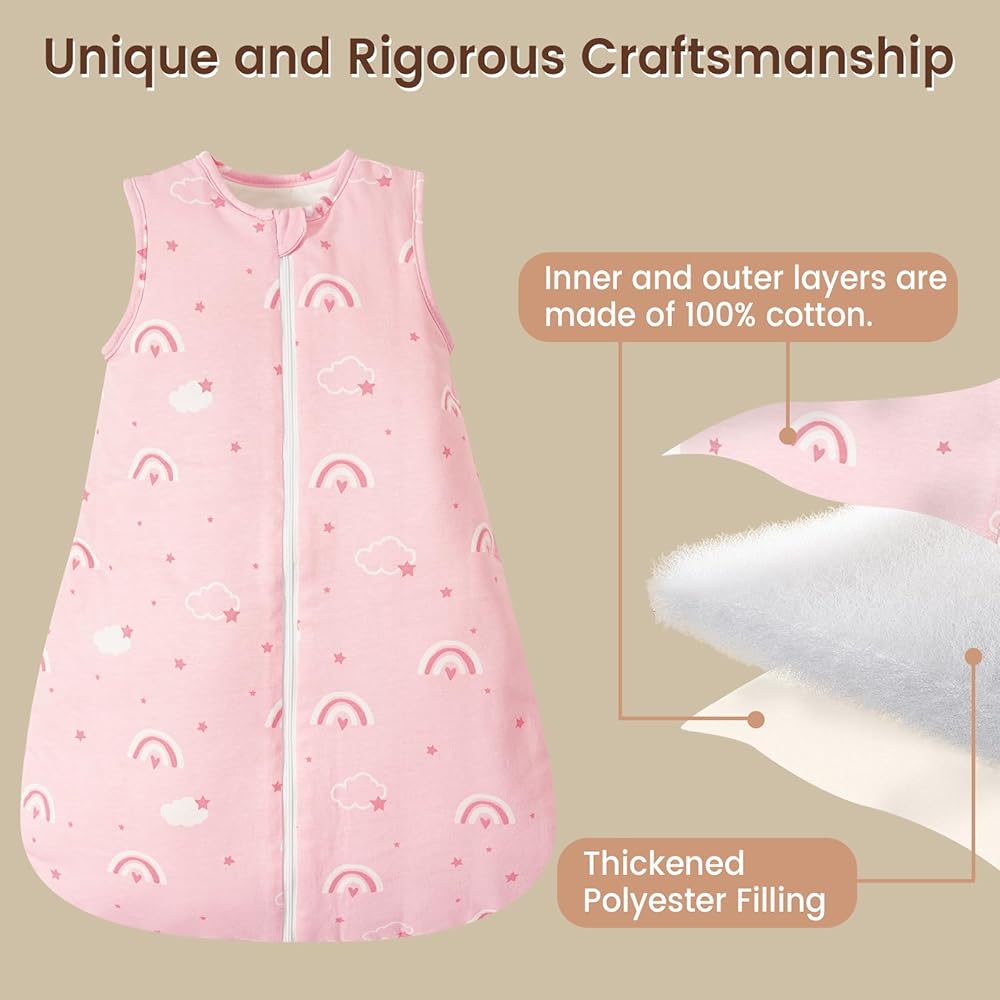 الجزء الخارجي مصنوع من القطن بنسبة 100%: الطبقة الخارجية لكيس نوم الأطفال الشتوي الخاص بنا مصنوعة من القطن بنسبة 100%، ناعمة ومسامية، والجزء الداخلي مملوء بألياف البوليستر السميكة، والأقمشة الفاخرة ستحمي بشرة طفلك الحساسة بشكل أفضل. يساعد توغ 2.5 على إبقاء طفلك مرتاحاً أثناء الليل، مما يسمح لطفلك بالحصول على نوم جيد أثناء الليل خلال أشهر الخريف والشتاء الباردة.