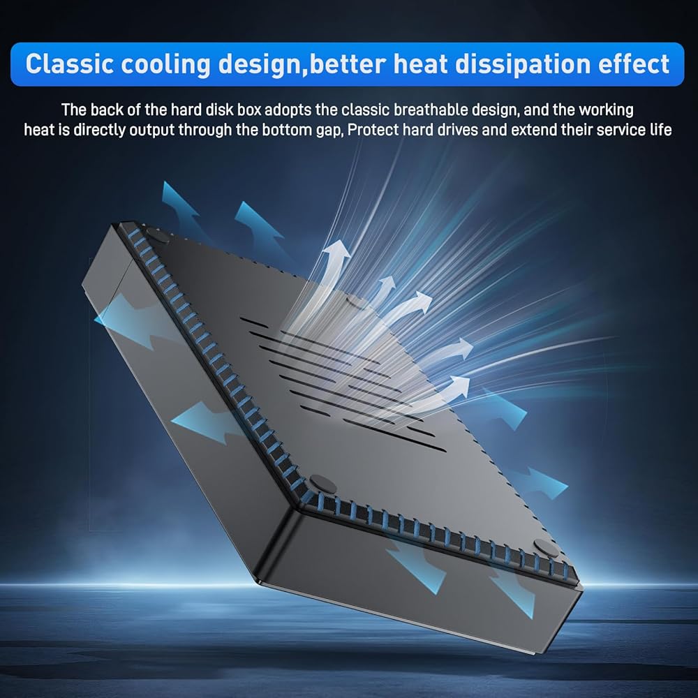 • 【تصميم تبريد كلاسيكي】يعتمد الجزء الخلفي من صندوق القرص الصلب التصميم الكلاسيكي المسامي، ويتم إخراج حرارة العمل مباشرة من خلال الفجوة السفلية لحماية الأقراص الصلبة وإطالة عمر الخدمة.
