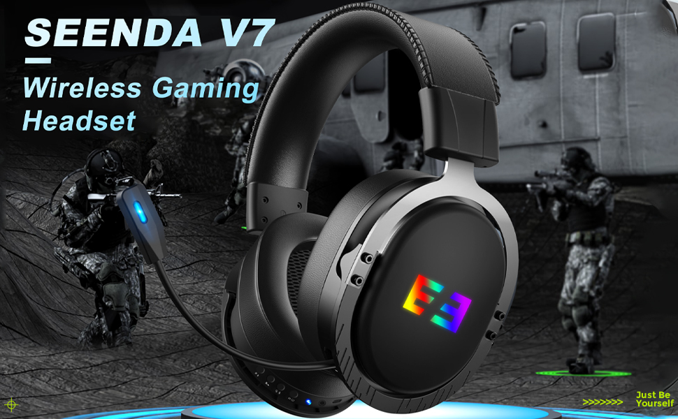 سماعة ألعاب لاسلكية من سيندا V7 مع ميكروفون للكمبيوتر الشخصي، PS5، PS4، سماعات ألعاب ثلاثية الوضع 2.4 جيجا هرتز لاسلكية/بلوتوث 5.0/3.5 ملم مع ضوء RGB، بطارية 20 ساعة