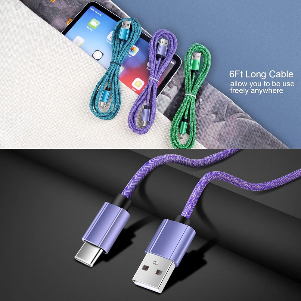 Android Samsung Charger Fast Charging Cord Phone C Type Charger Fast Charge USB C Cable 6FT
