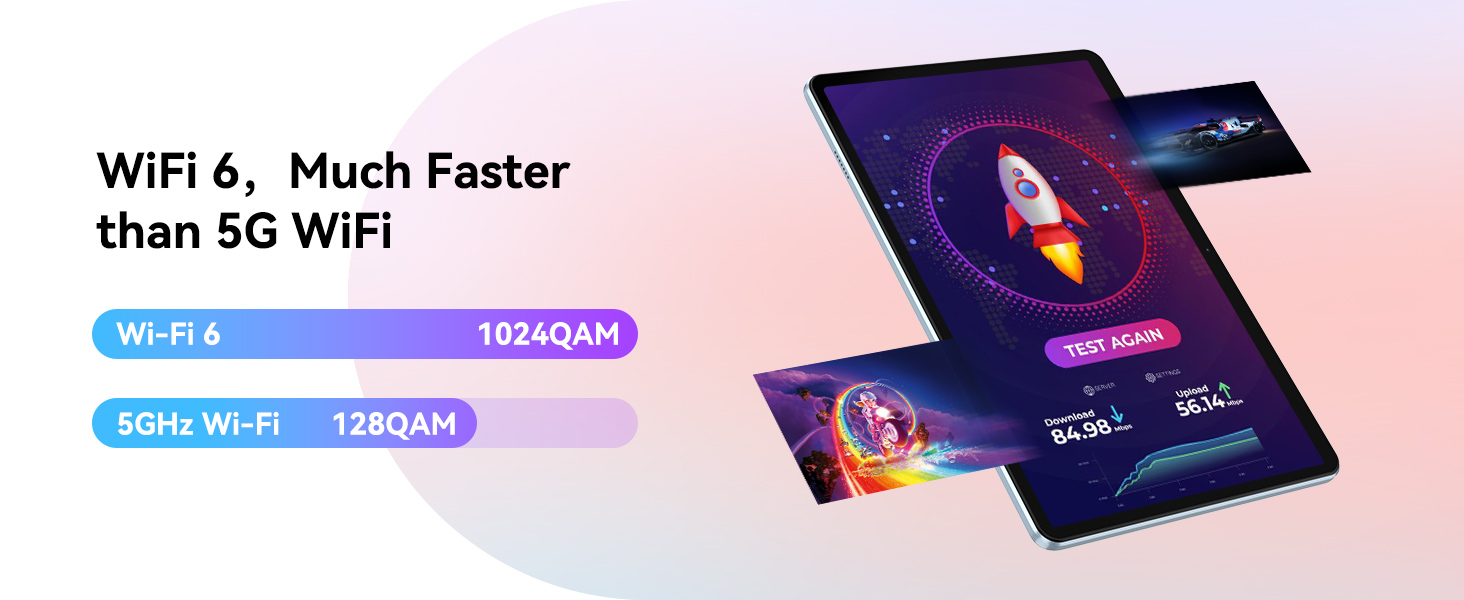 هل ما زلت تشعر بالانزعاج من بطء تحميل مقاطع الفيديو وصفحات الويب؟ اختر جهاز Tab 8 WiFi اللوحي الخاص بنا! نحن نقدم أحدث نظام Android 12 ودعم WiFi 6 القوي (يغطي WiFi6 نطاق 2.4/5 جيجا هرتز، مما يتيح سرعة نقل أسرع بثلاث مرات، وقدرة نقل أكبر، ومزيد من الاستقرار، وفوائد الجهاز في زمن الوصول والخسارة المنخفضة مقارنة بـ WiFi5).