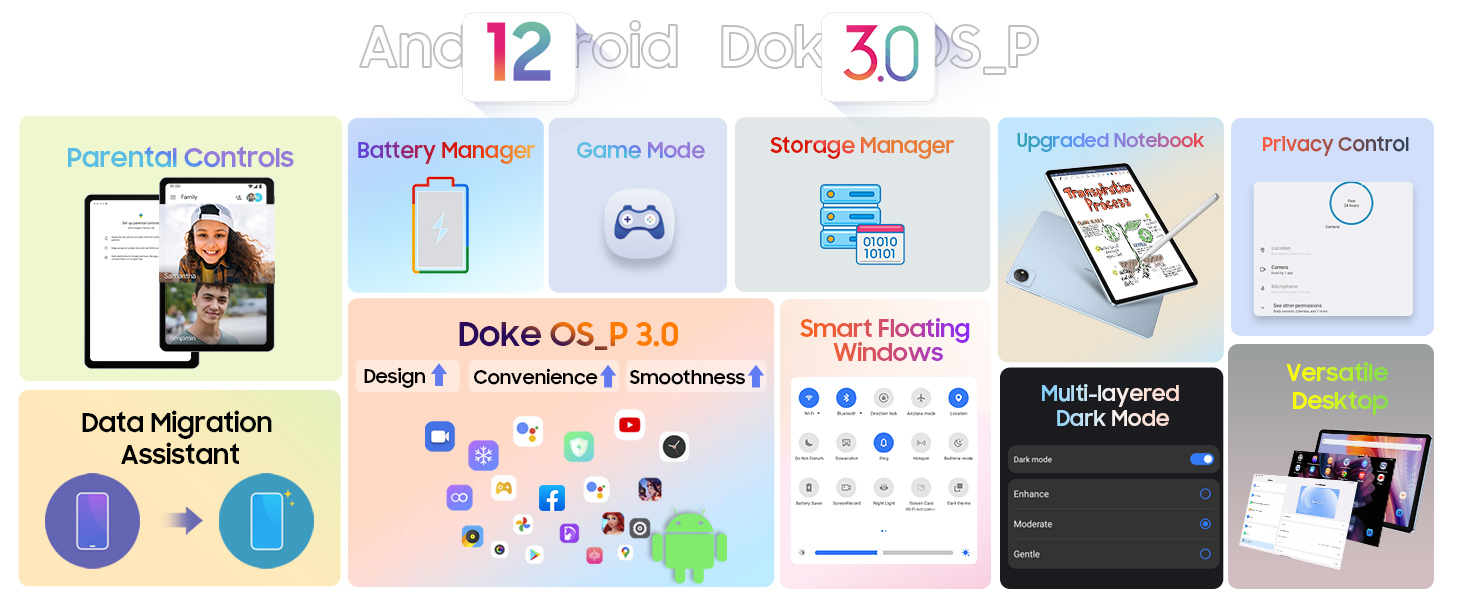 يتفوق الكمبيوتر اللوحي Tab 8 WIFI مقاس 10 بوصة على جميع المنافسين بفضل ذاكرة الوصول العشوائي (RAM) التي تبلغ سعتها 7 جيجابايت. بالإضافة إلى سعة 4 جيجا بايت الموجودة بالجهاز اللوحي بالفعل، يمكنك إضافة 3 جيجا بايت من الذاكرة الافتراضية في الإعدادات. يمنحك هذا إجمالي 7 جيجابايت من الذاكرة قيد التشغيل. بفضل ذاكرة القراءة فقط (ROM) التي تبلغ سعتها 64 جيجابايت ومساحة التخزين القابلة للتوسيع التي تبلغ 1 تيرابايت، لديك مساحة كبيرة لتخزين جميع الملفات والصور التي تريدها. يعمل المعالج رباعي النواة القوي وسريع الاستجابة على تشغيل جهاز Tab 8 WIFI. وبدمجه مع الذاكرة، فإنه يجعل الجهاز اللوحي يبدو سلسًا جدًا في الاستخدام.