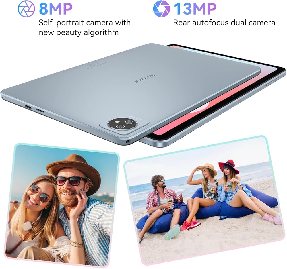 يحتوي جهاز Blackview Tab 8 WiFi على شاشة FHD مقاس 10 بوصات بدقة 1280 × 800 للحصول على تفاصيل استثنائية. التقط صورًا وصور سيلفي ومقاطع فيديو مذهلة باستخدام الكاميرا الخلفية المذهلة بدقة 13 ميجابكسل والكاميرا الأمامية بدقة 8 ميجابكسل، وشارك مغامراتك بألوان زاهية.