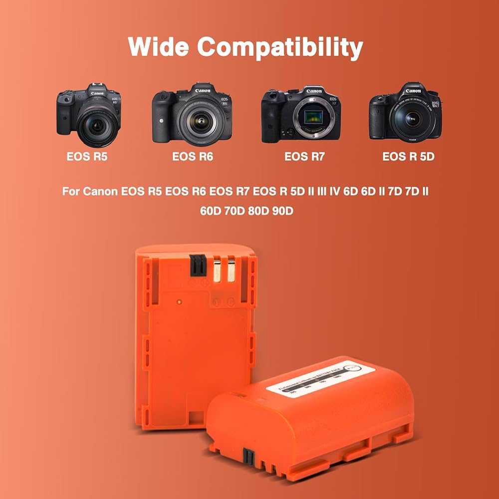 【Wide Compatibility】The LP-E6NH LP-E6N LP-E6 Battery is designed to be a high-quality power source for Canon EOS R5 EOS R6 EOS R7 EOS R 5D II III IV 6D 6D II 7D 7D II 60D 70D 80D 90D.