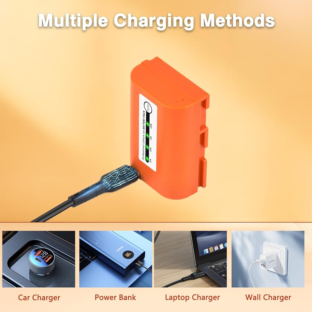 【USB Type C Charging Port】 The featured USB Type C charging interface makes it much easier to charge your camera battery on the go. With the included USB Type A to Type C charging cable, quickly charge the battery by connecting to a portable charger or wall charger. Also compatible with original LP-E6NH battery charger.