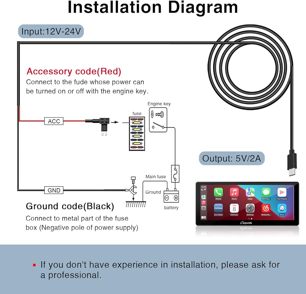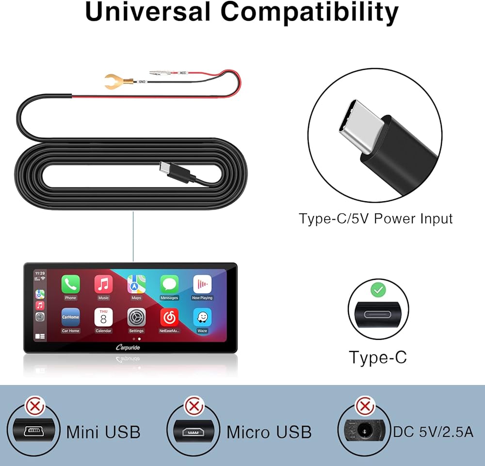• CARPURIDE Type-C 12V - 24V to 5V/2A Max Car Charger Cable kit