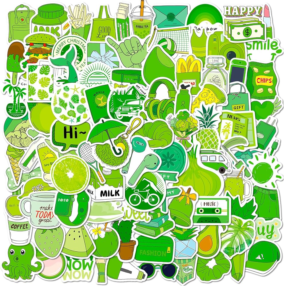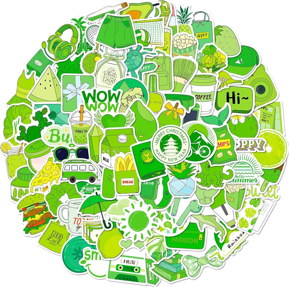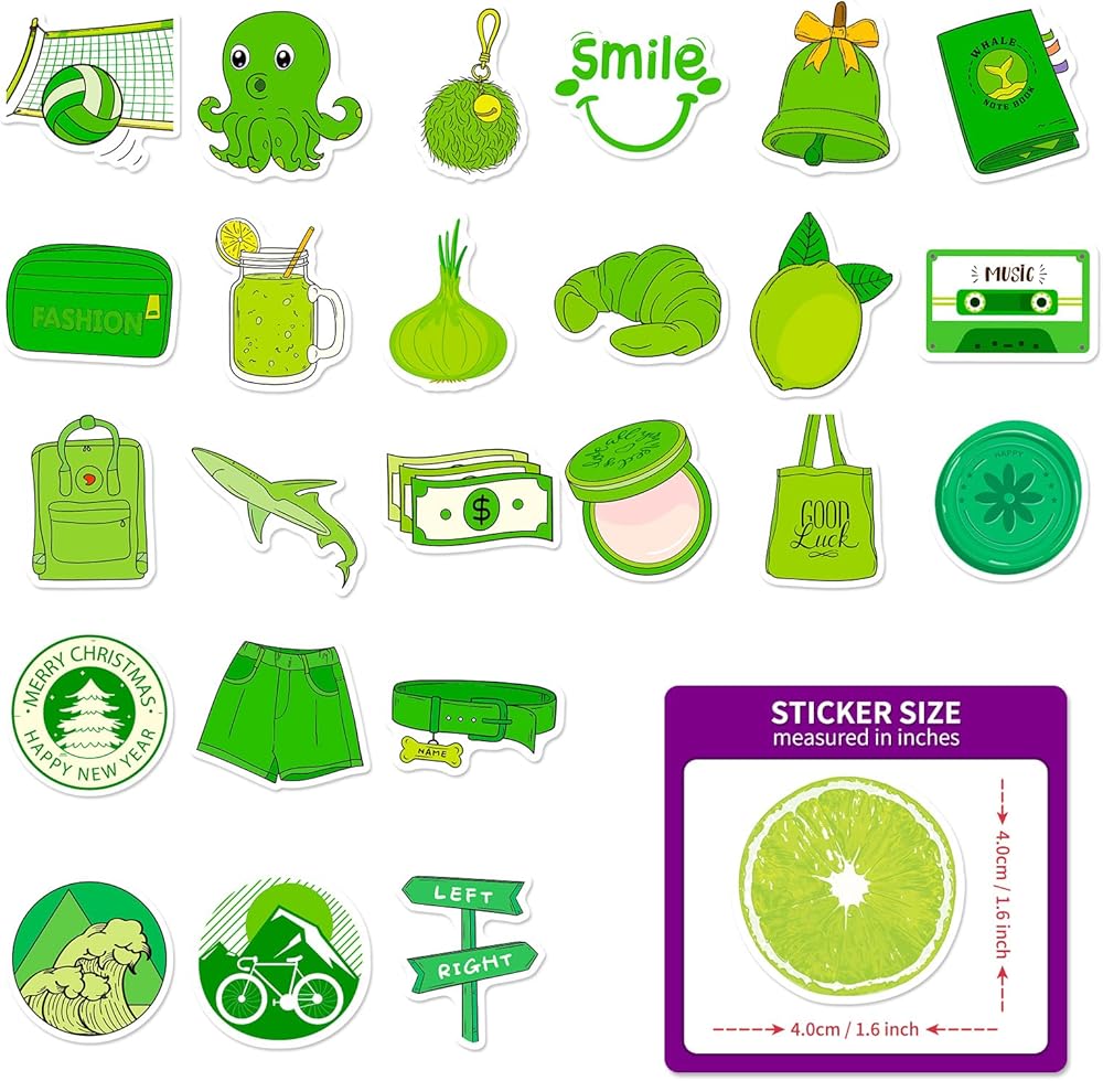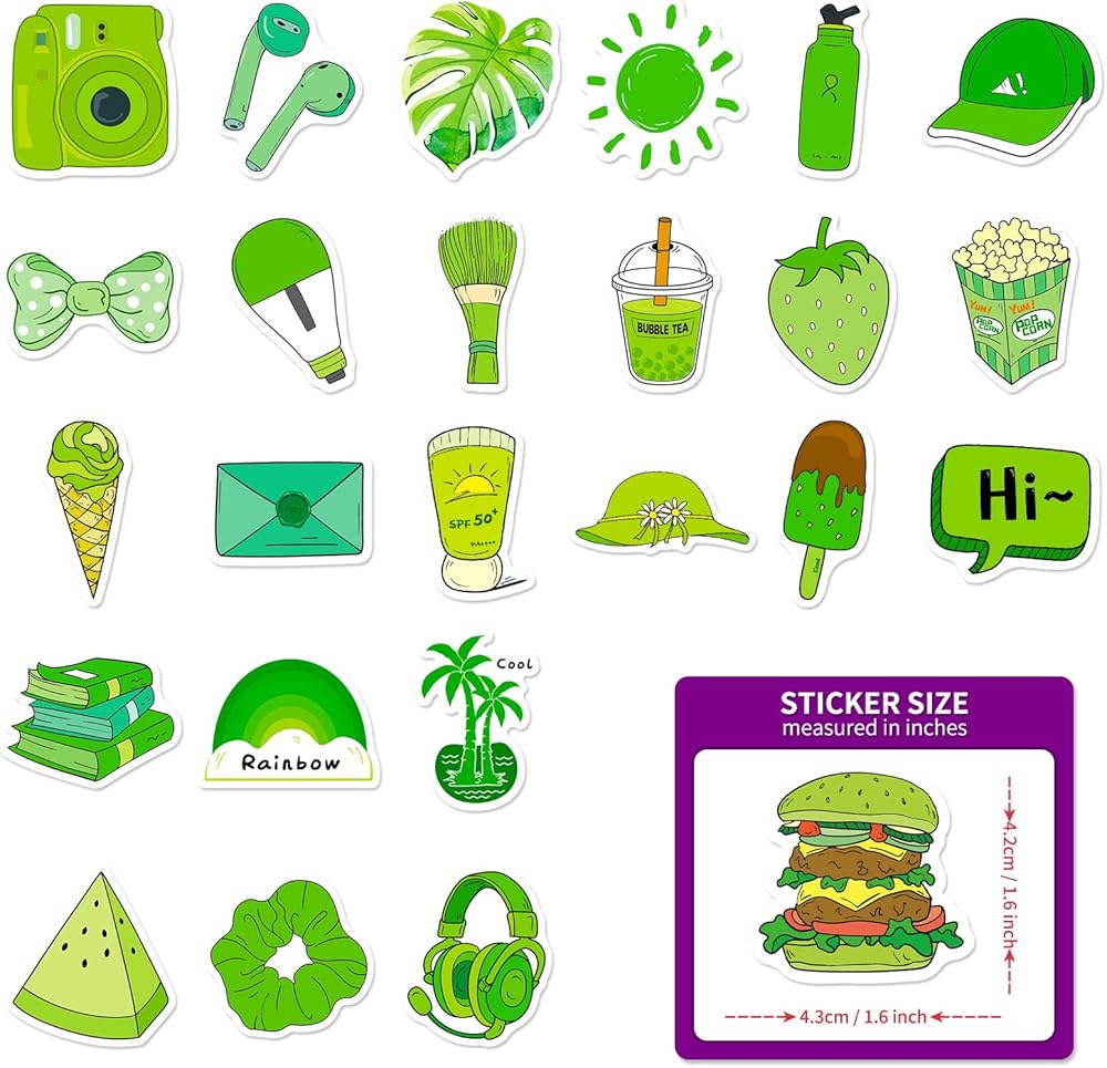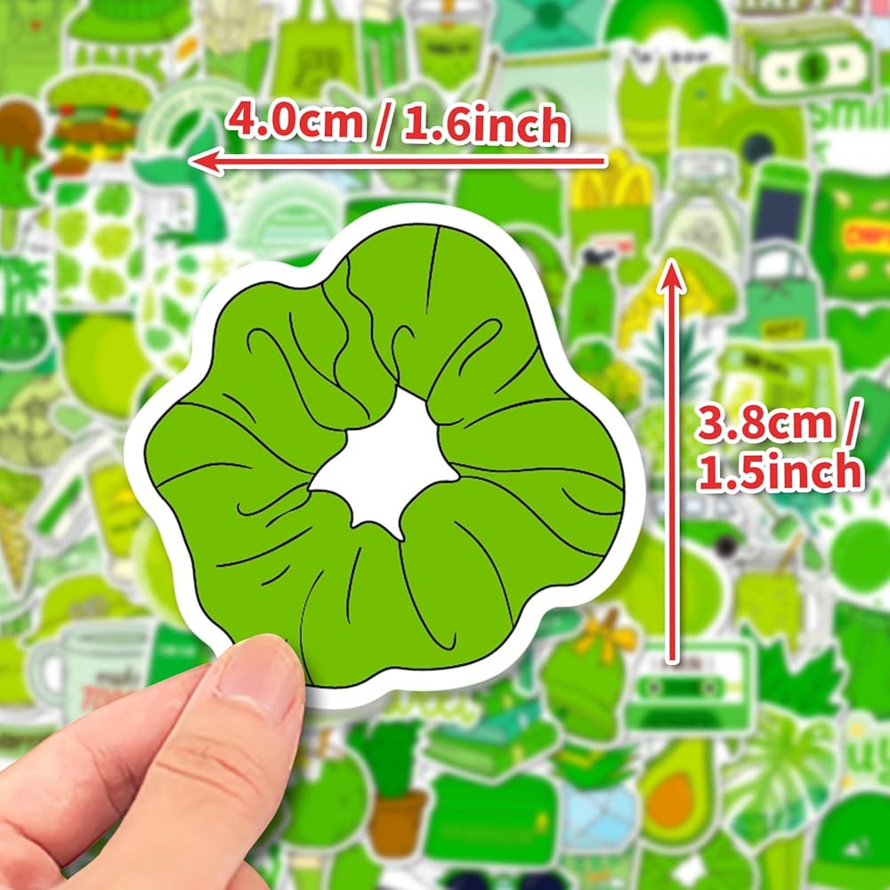 WHAT YOU GET - 100 pieces different 1.5-1.6" green aesthetic stickers. No duplicates, the pattern shown in the main picture will appear in your package.