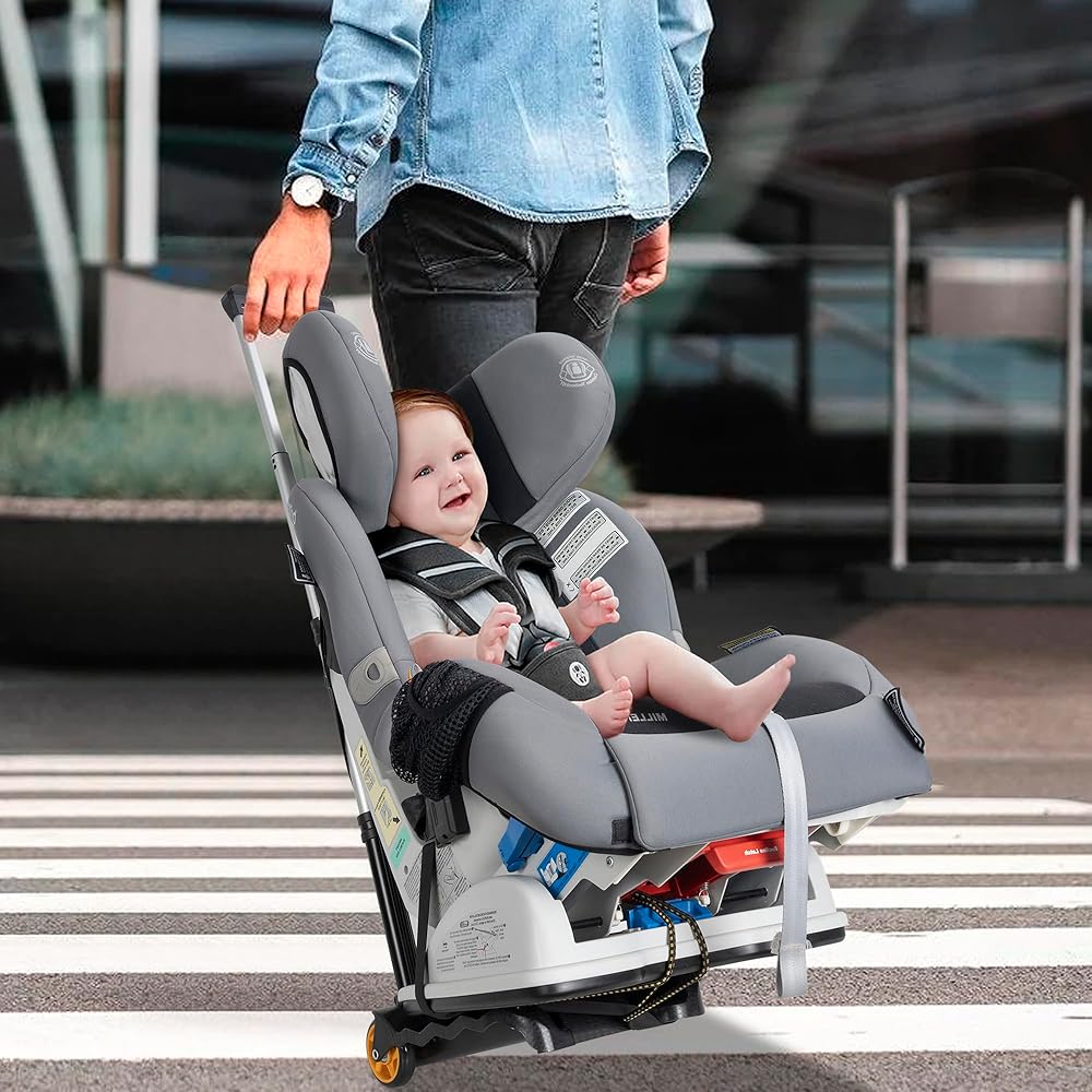 Strong Bearing Capacity, Sturdy and Durable: The car safety seat cart is made of tough aluminum alloy, which is reliable and durable. Large, stable chassis with loads up to 55 lbs