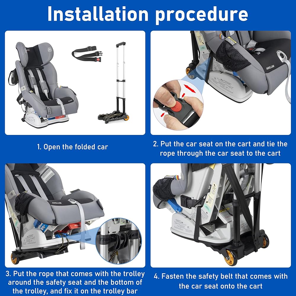 Great Wheels: The wheels are quiet and wear-resistant. More stable and balanced, with added load capacity and stability, simply place the car seat on the cart, secure with the included straps, and roll through the airport with ease