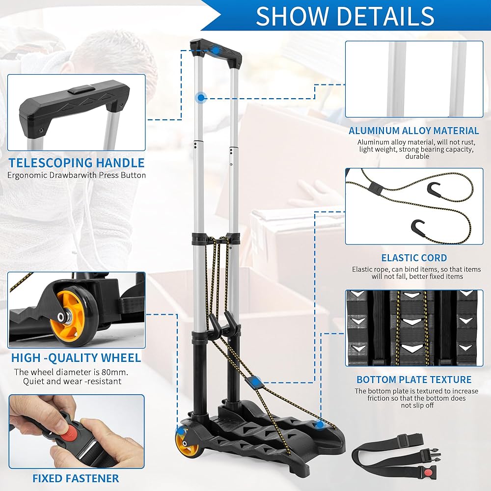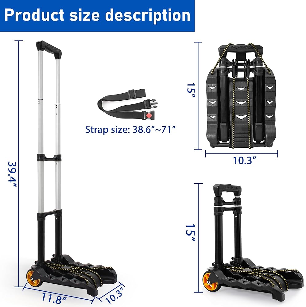 Easy to Fold and Store: Folded size: 15.6" x 13" x 3.5". Unfolded dimensions: 12.6" x 13" x 38.3". You can easily fold or unfold this folding truck in seconds (Does not include car seats)