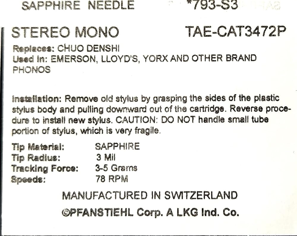 - Pfanstiehl replacement stylus - Pfanstiehl has been in the needle business for over 90 years