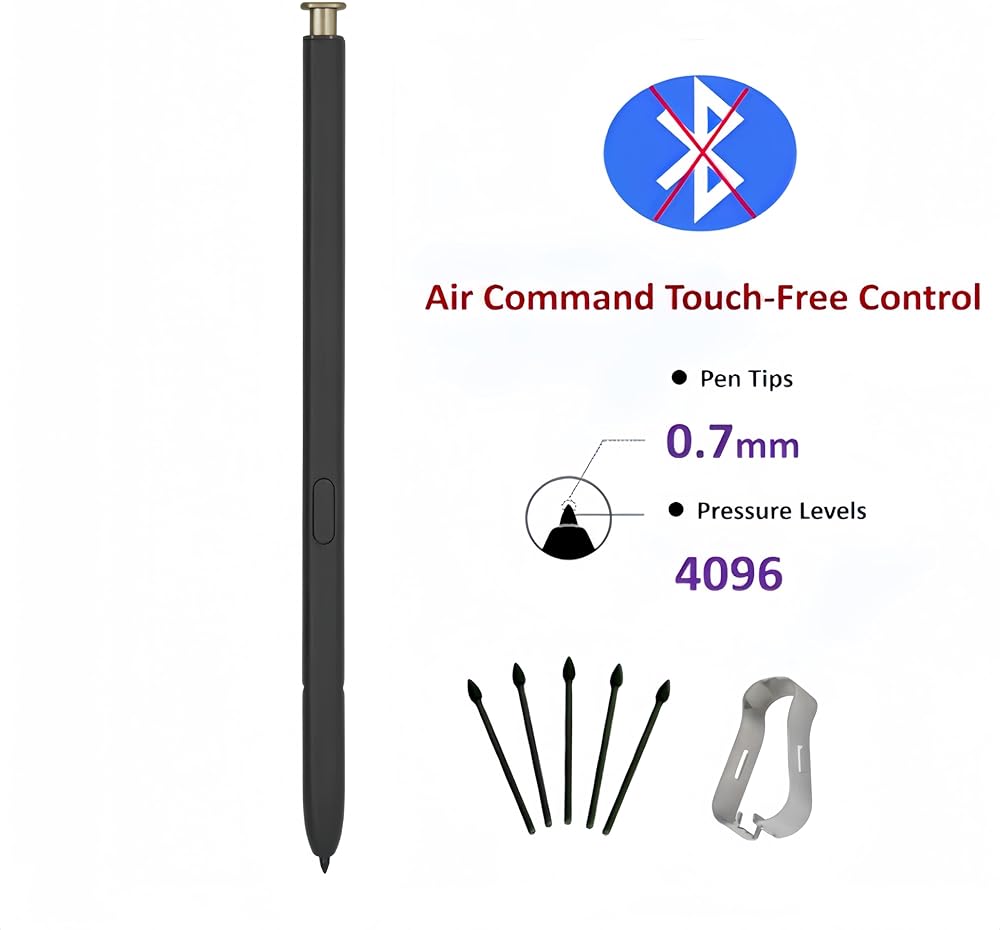 تشمل العبوة: قطعة واحدة من قلم Samsung Galaxy S24 Ultra 5G + 5 قطع أطراف بديلة + 1 ملقط.