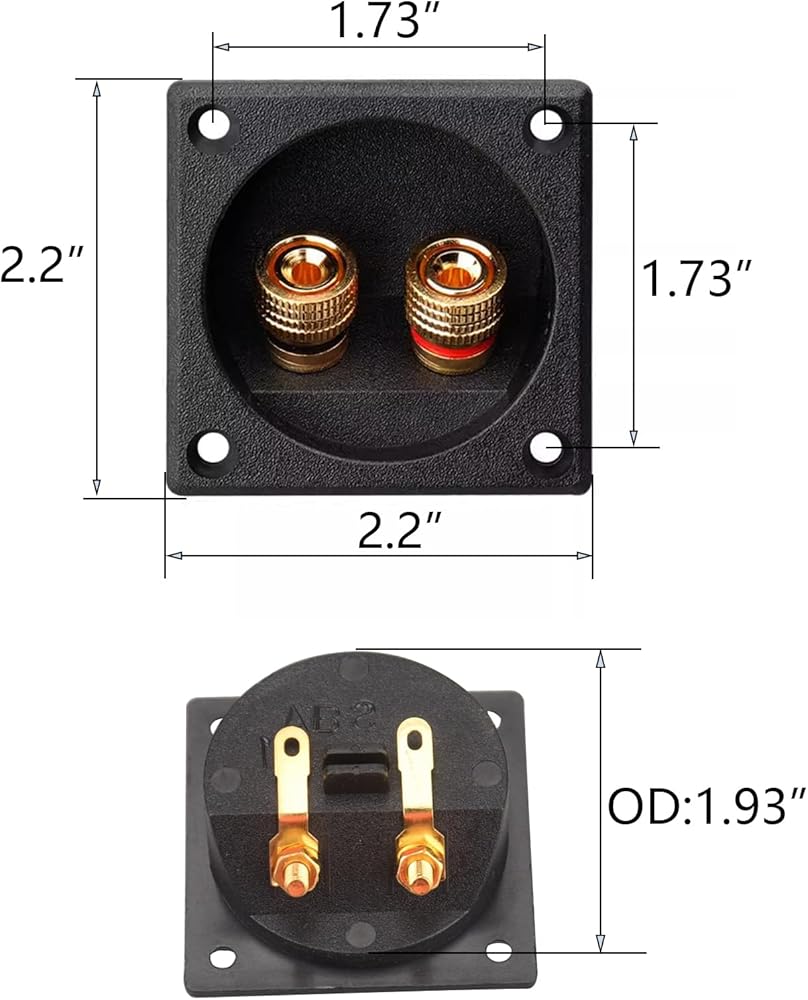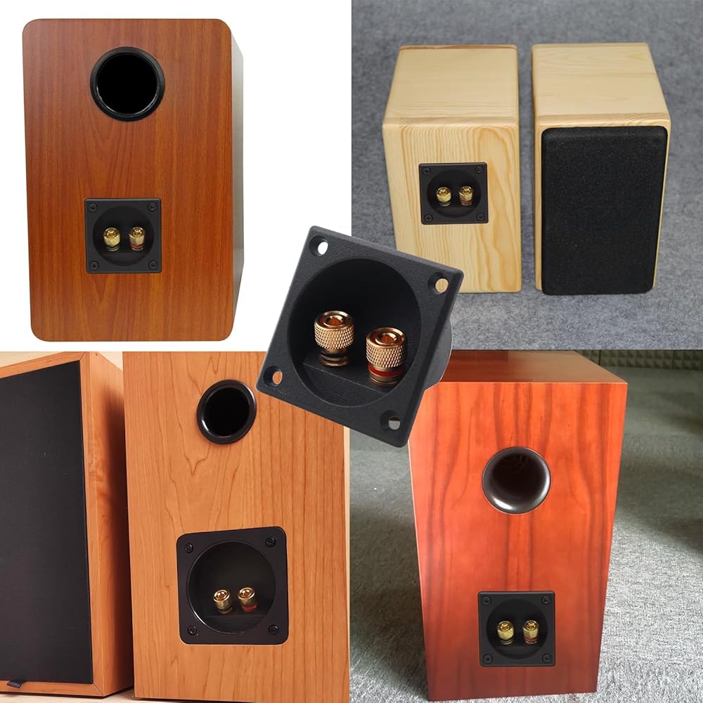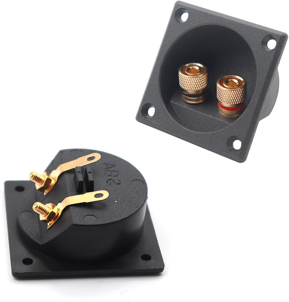 Easy to Connect:2-Way Square Speaker Terminal Box,Provides stability 2 connection modes,Banana clips and screw type binding post. Banana clips Suitable for 4mm banana plugs that make it easy to connect speaker wire to your speaker or subwoofer box.